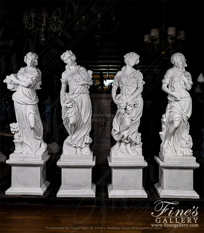 Four Seasons Goddess Statue Set in Statuary White Marble - MS-1282 (View 9)