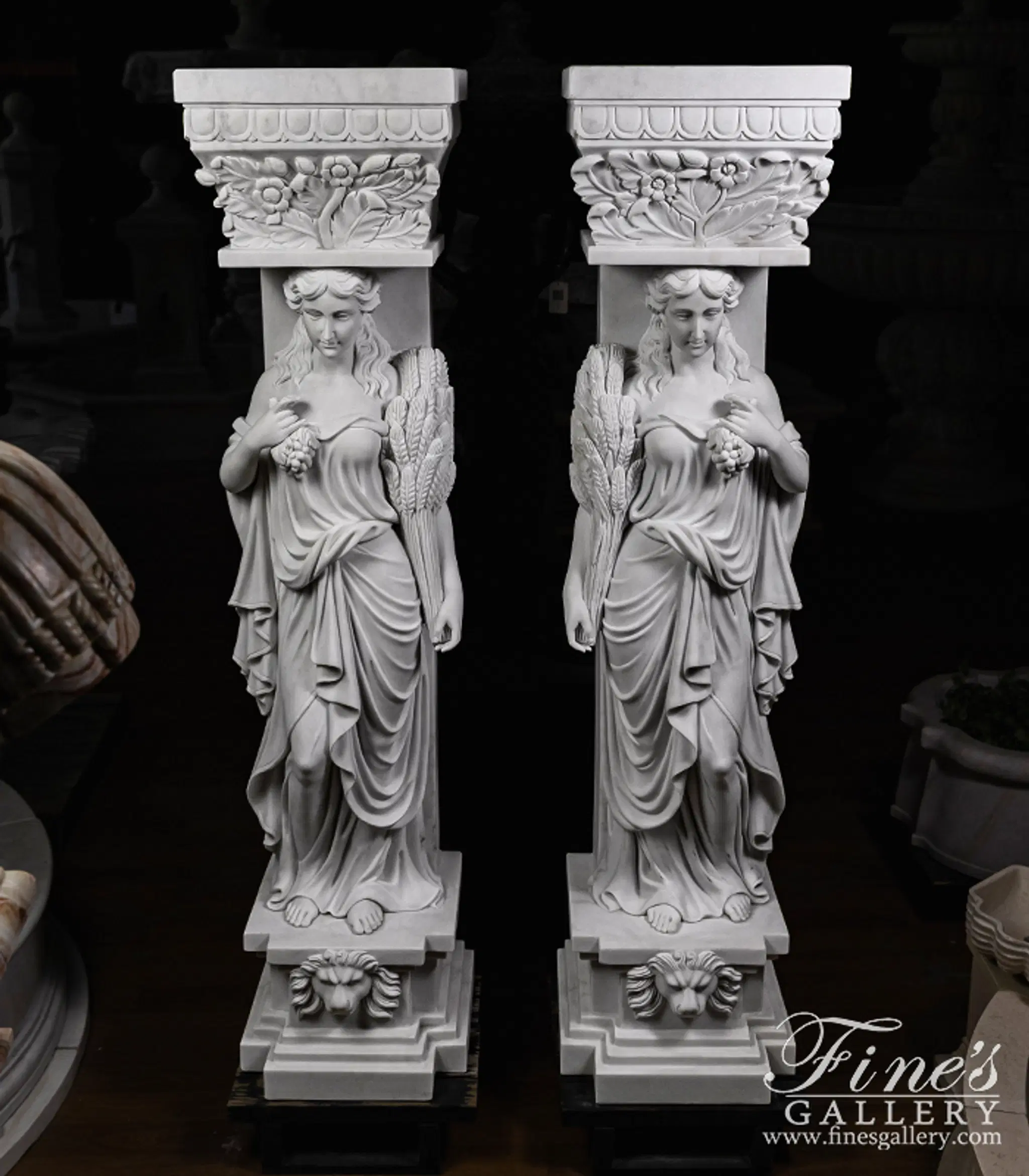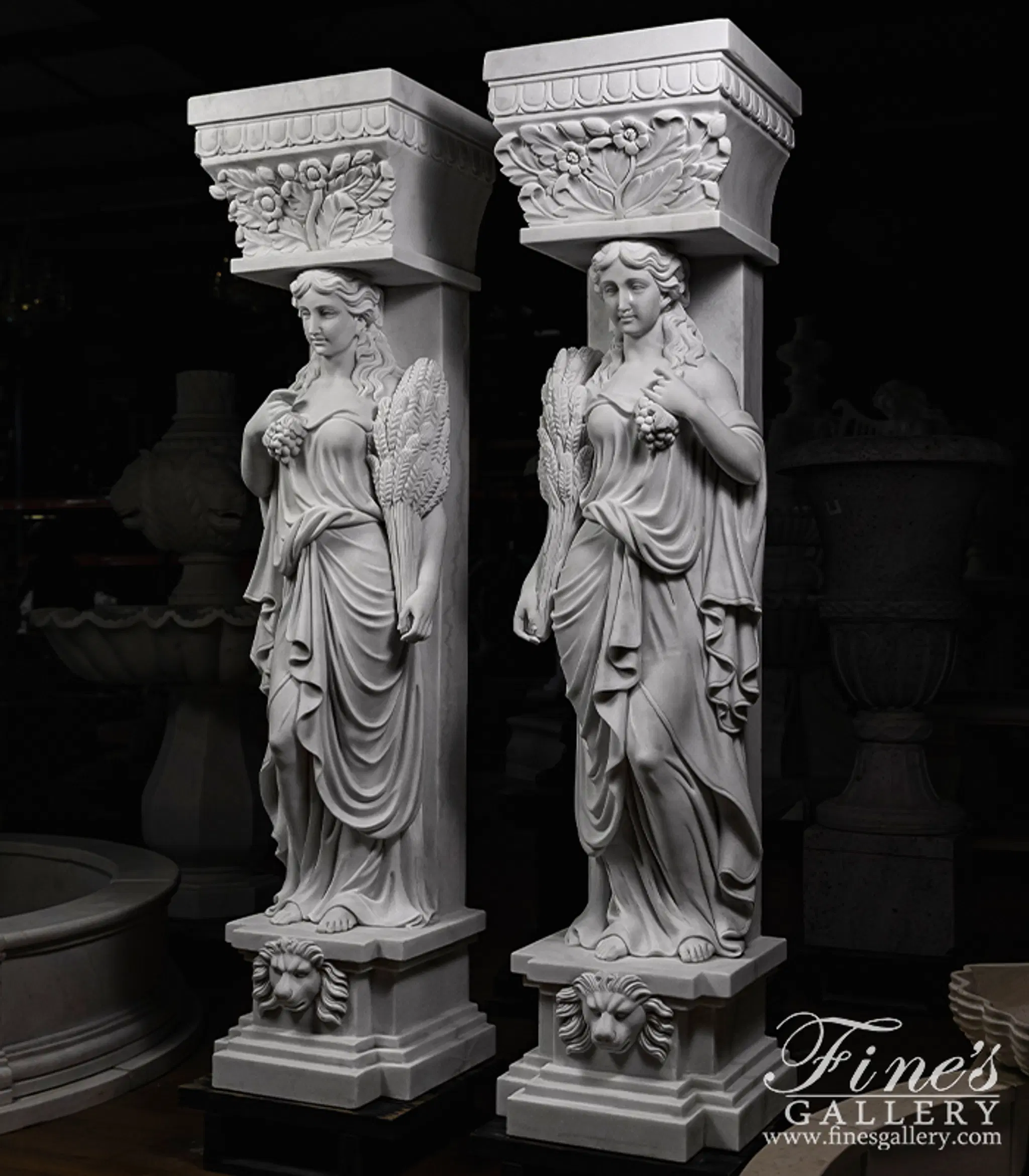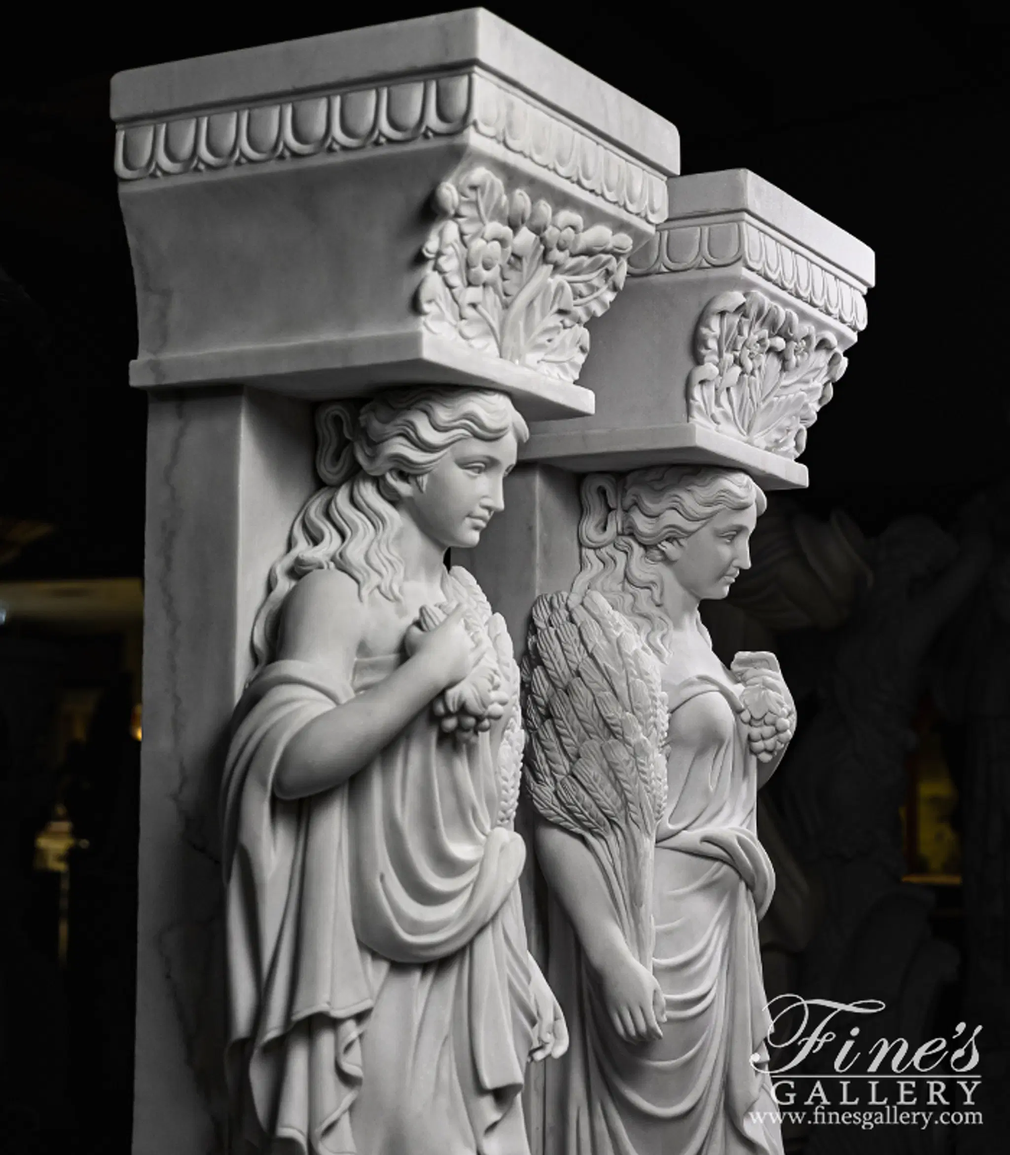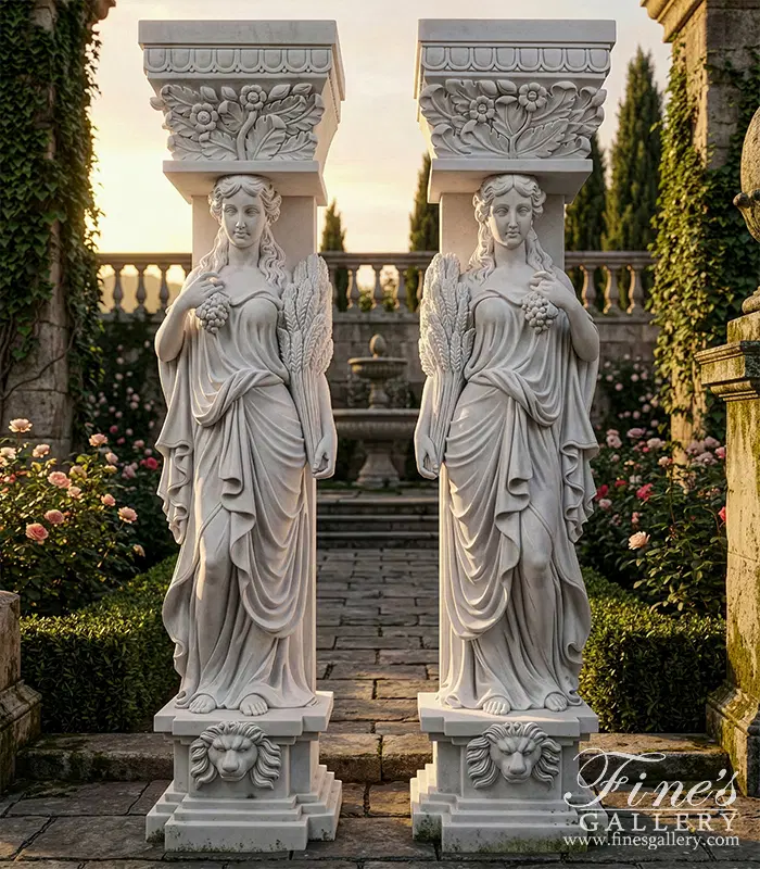 Grecian Statuary Caryatid Column Pair - Hand-Carved White Marble Statues for Interior & Exterior Decor - MS-1298 (View 2)