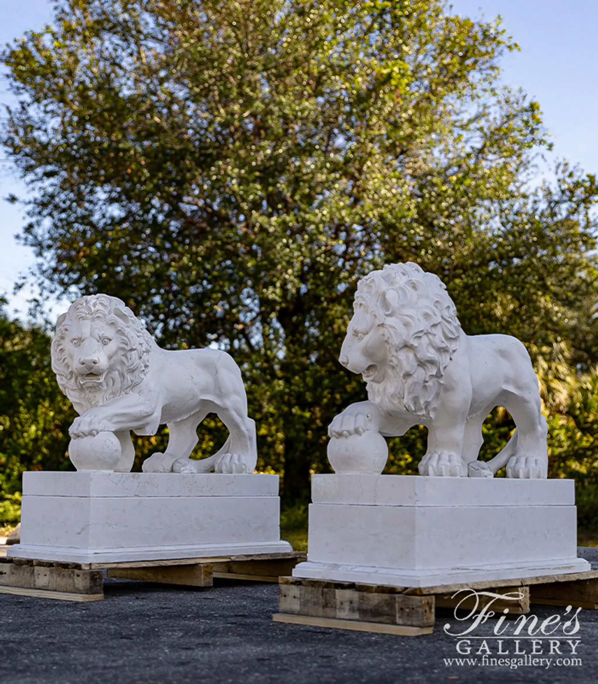Marble Lion Pair In Italian "Perlino" - MS-1334 (View 8)