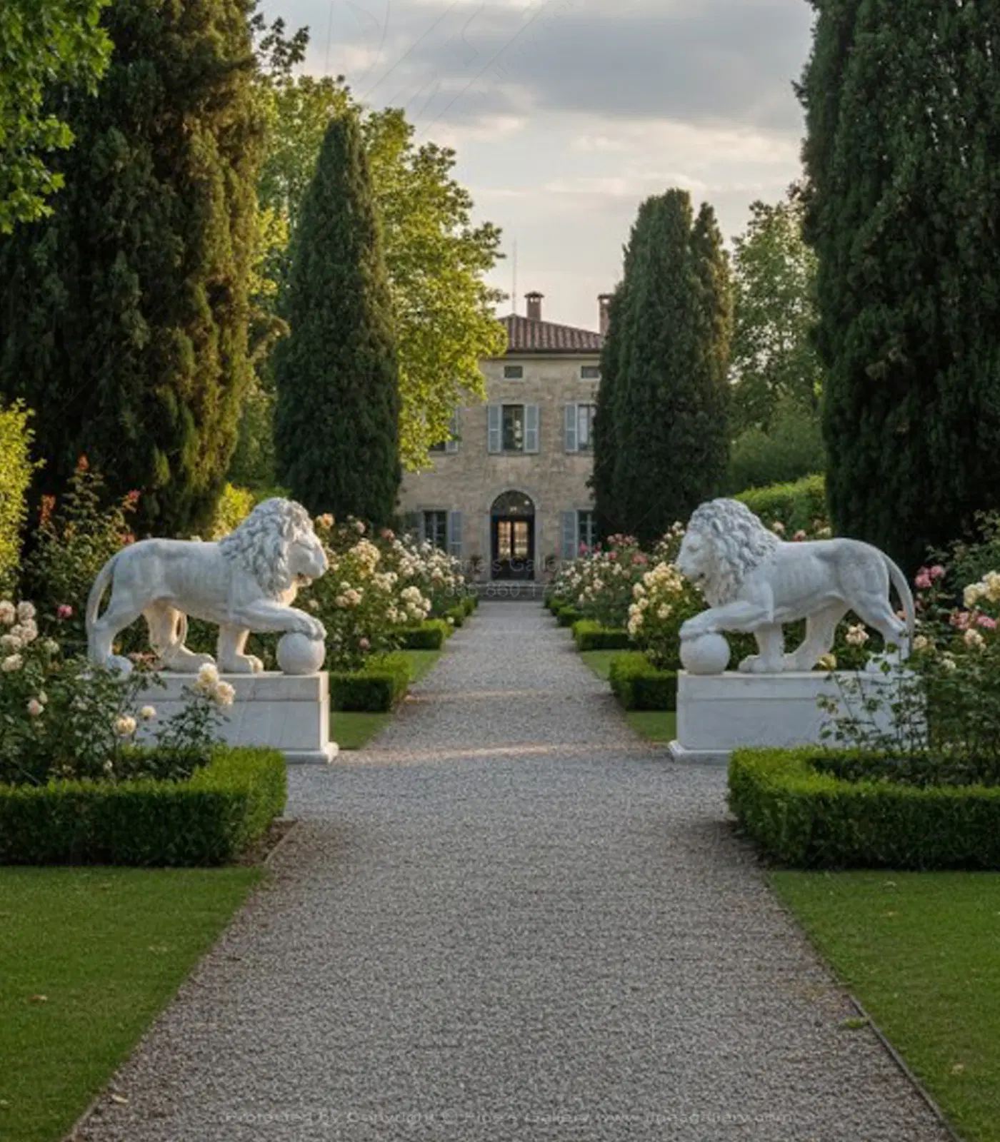 Marble Lion Pair In Italian "Perlino" - MS-1334 (View 7)