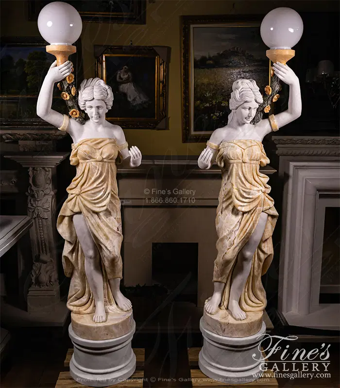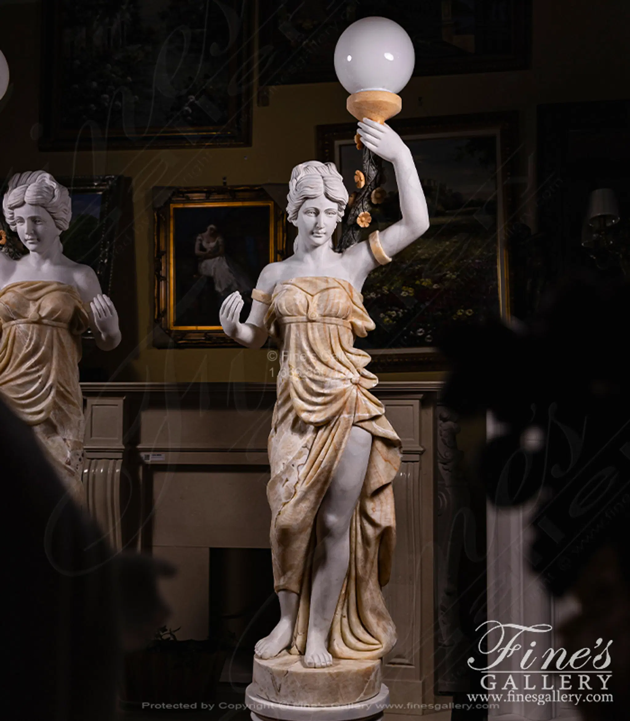 Figural Female Marble Lamp Post Pair - MS-1383 (View 3)