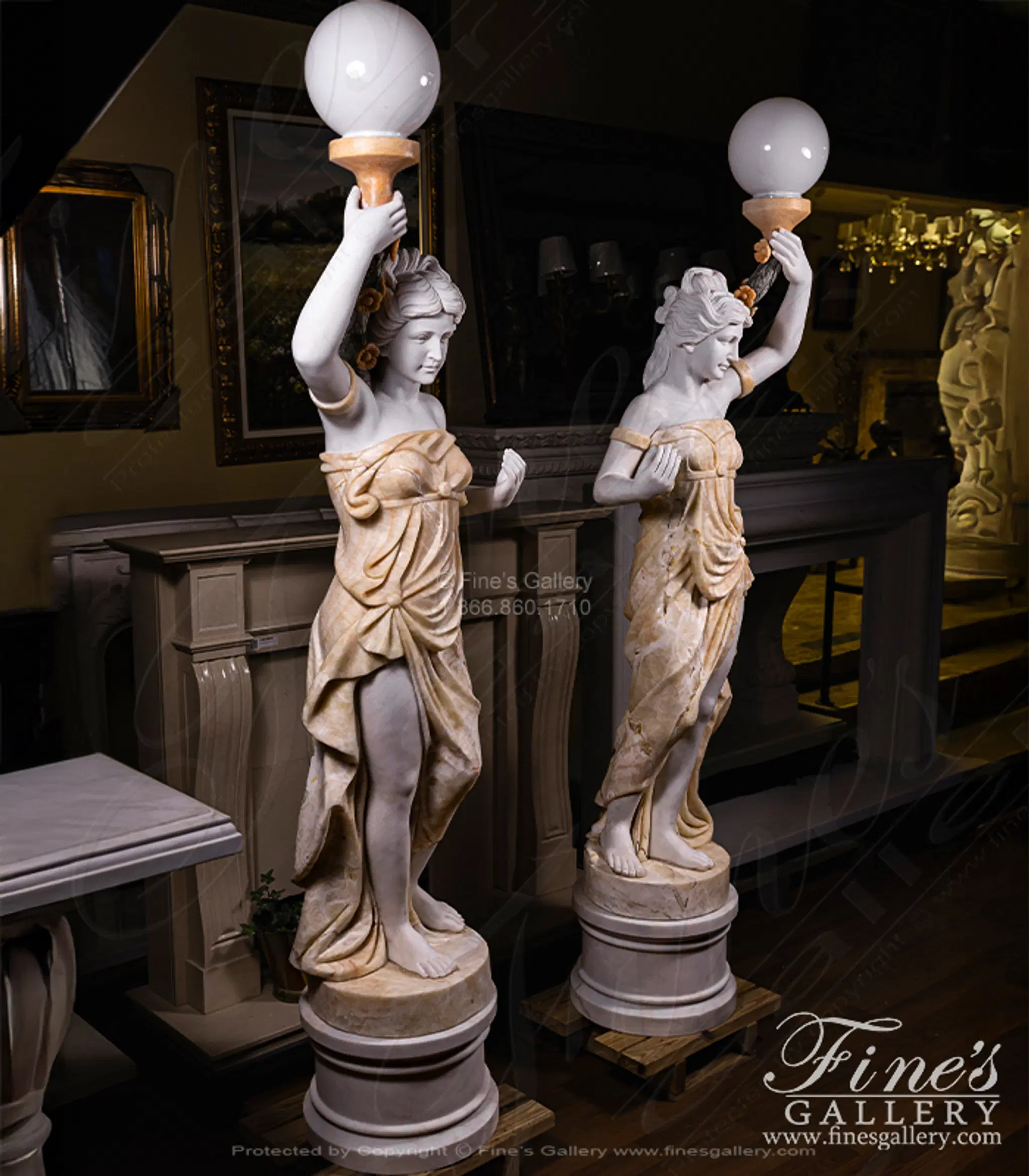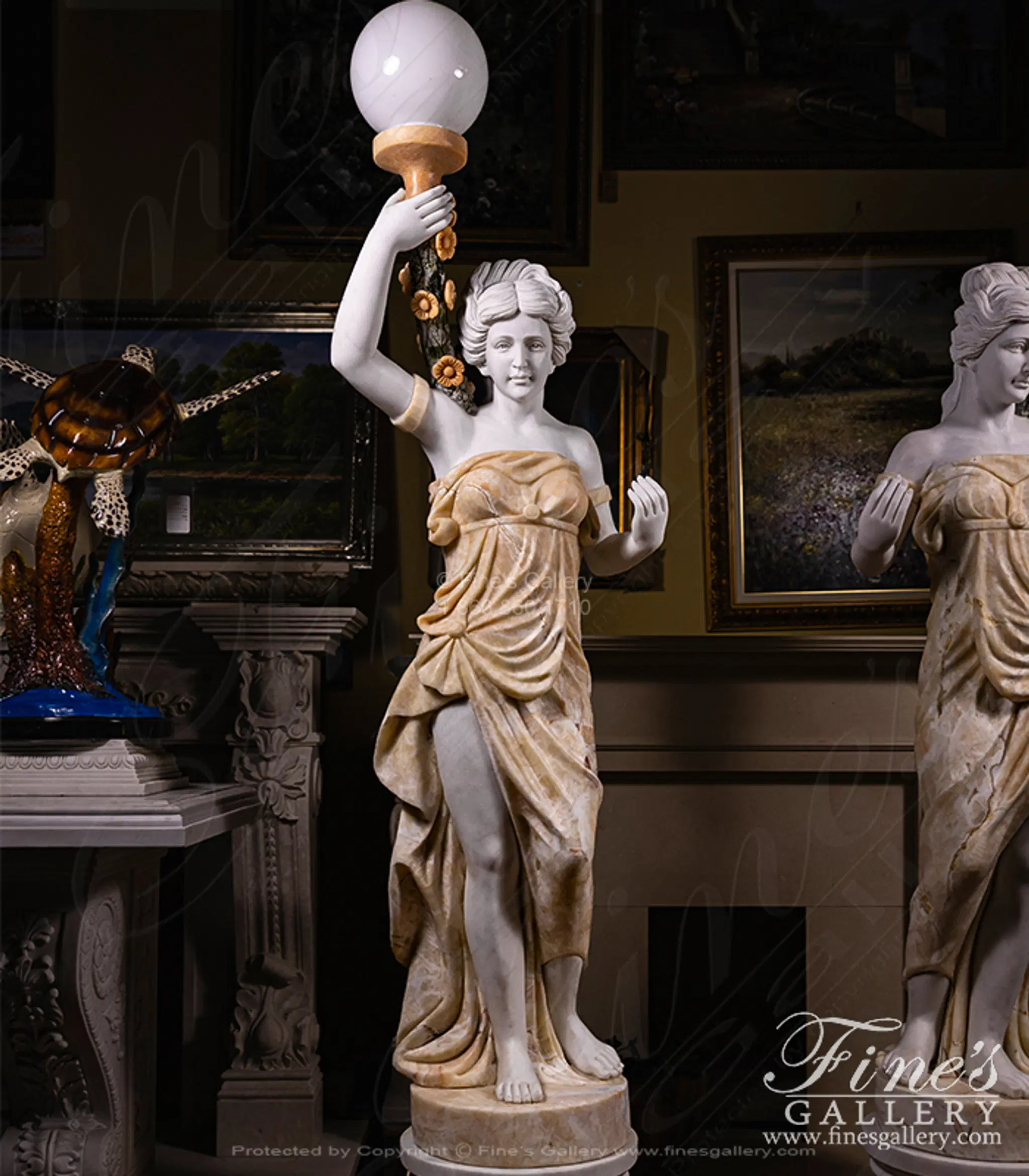 Figural Female Marble Lamp Post Pair - MS-1383 (View 2)