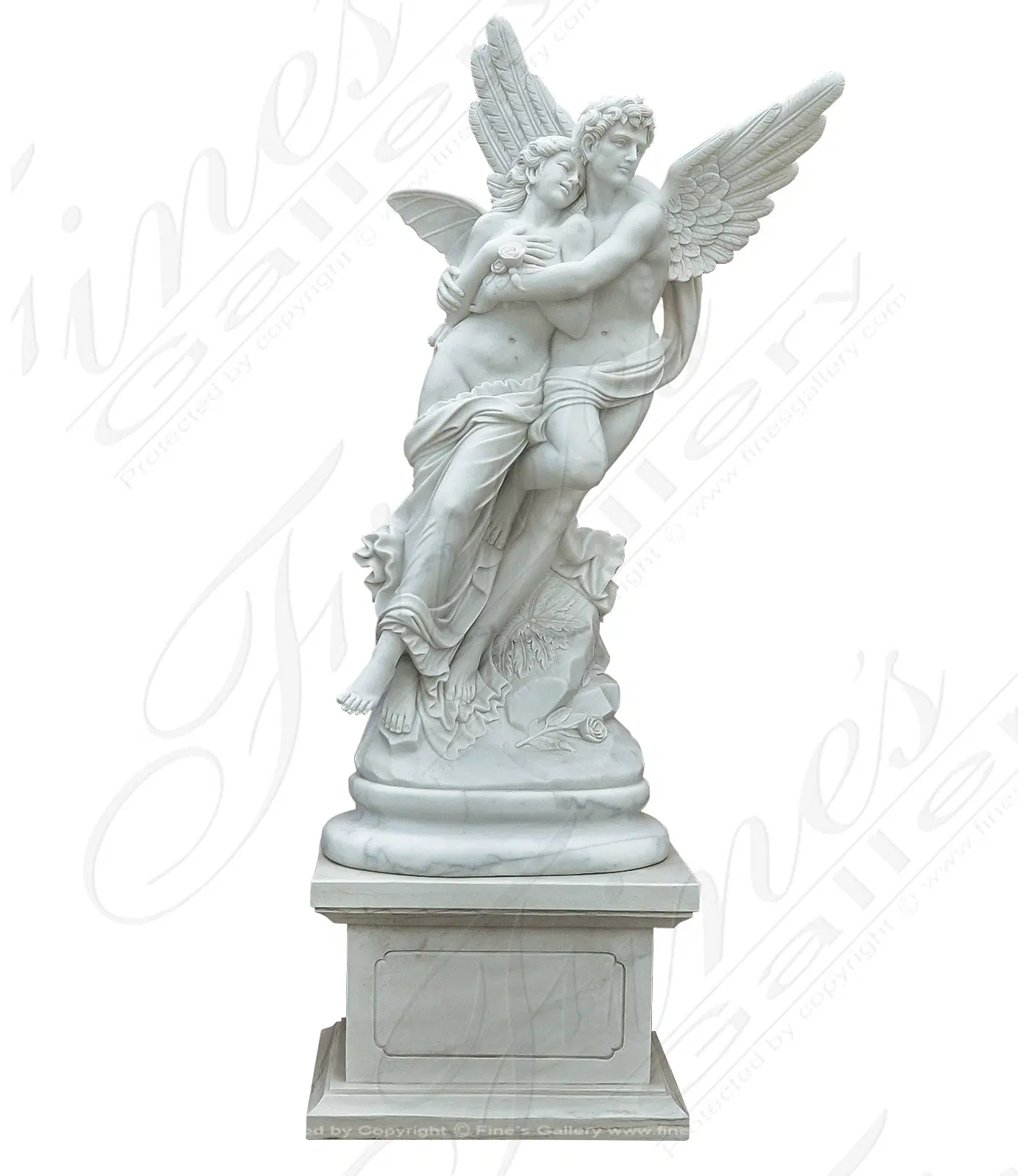 Abduction of Psyche Carved Marble Statue. A life size hand carved marble masterpiece. All carved from hand picked light statuary white marble. 24 Inch tall Pedestal Included!