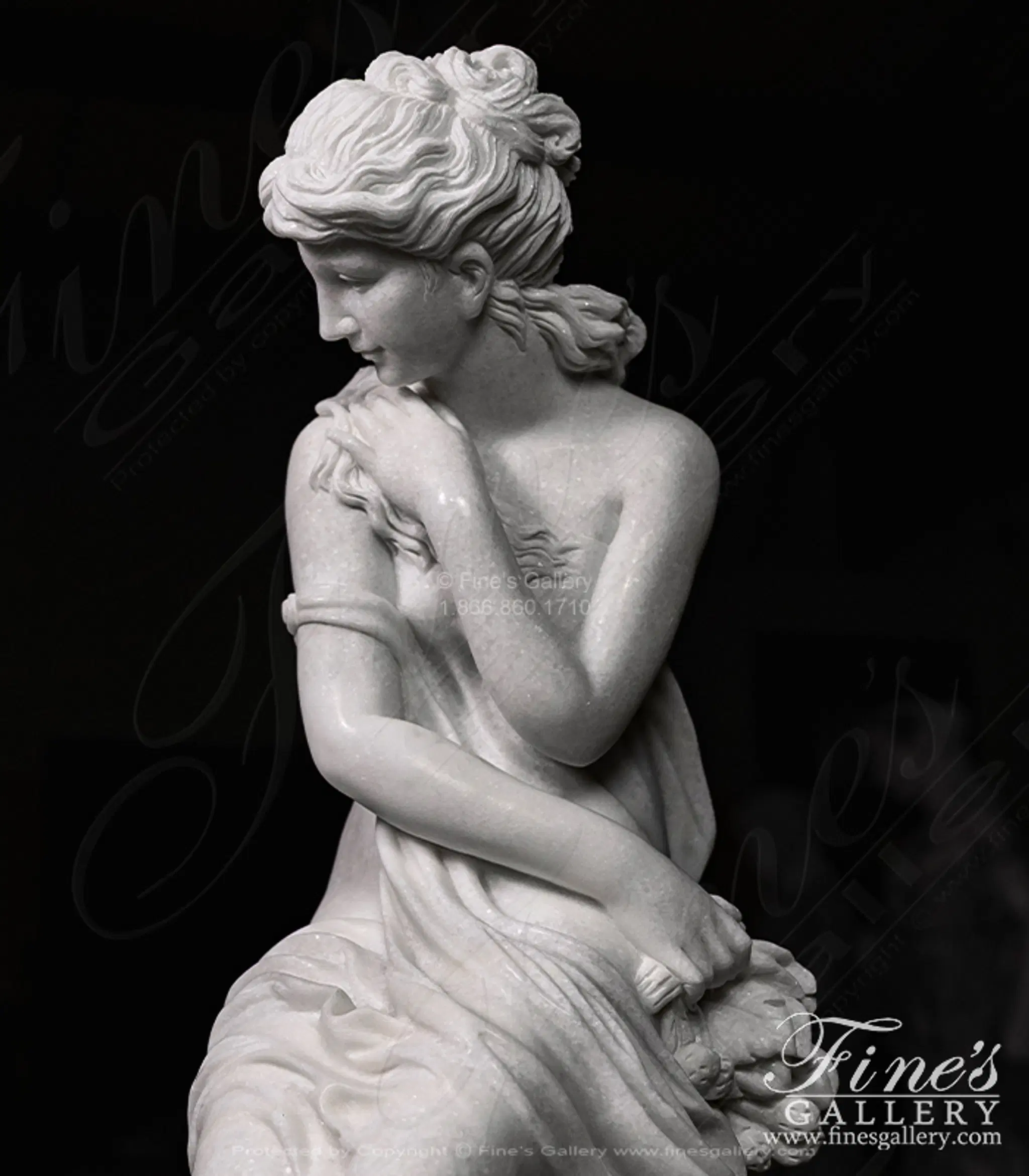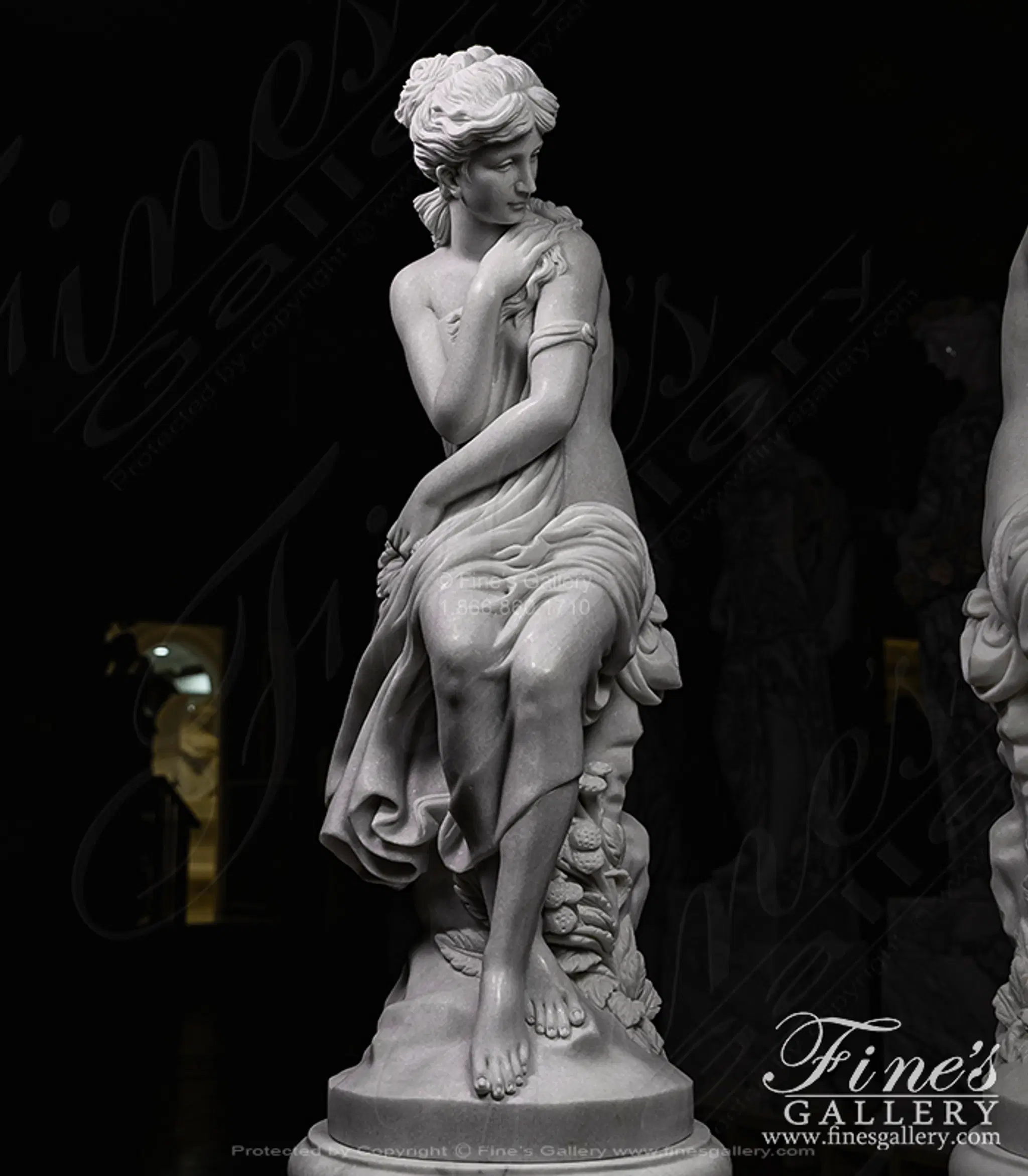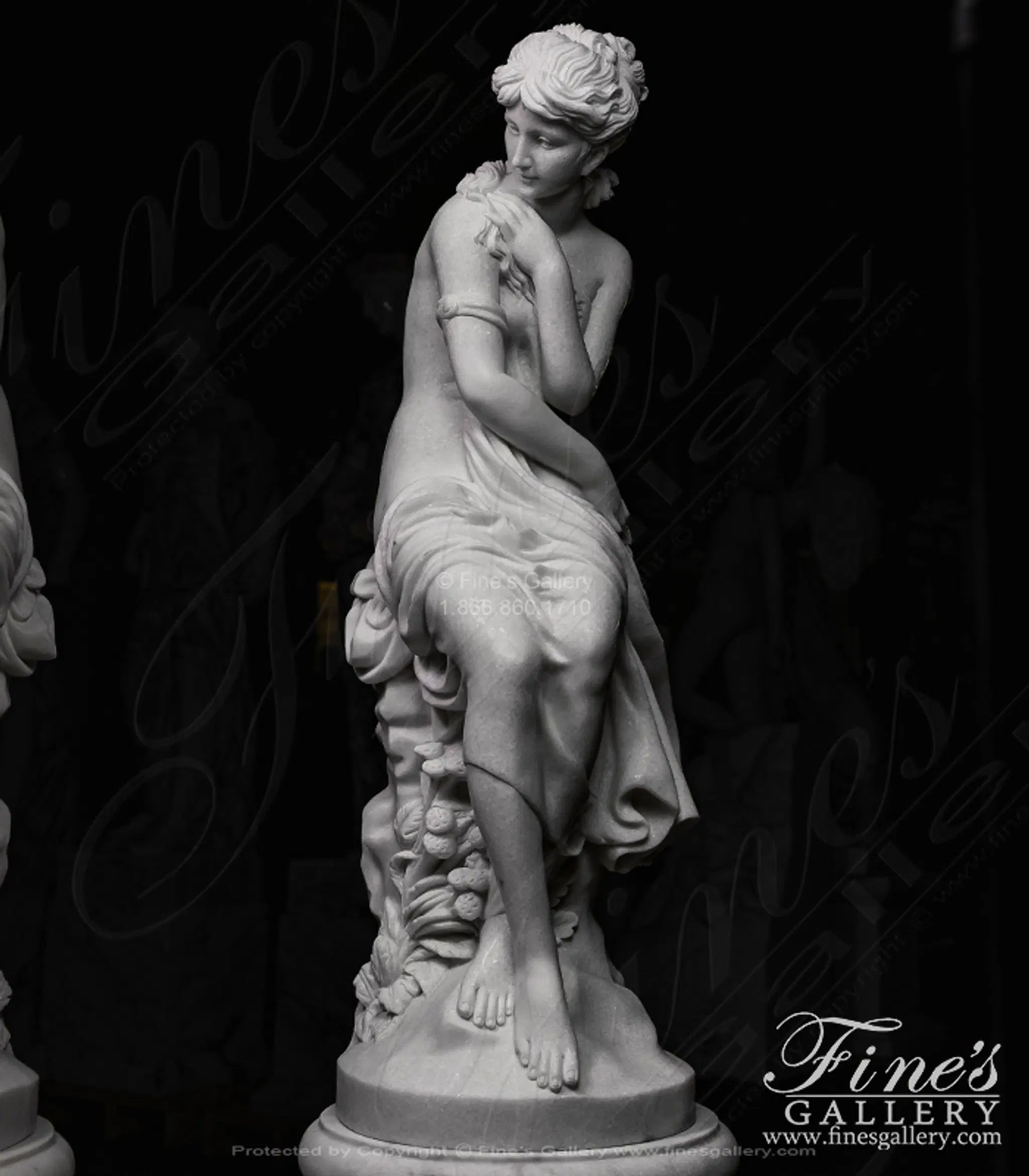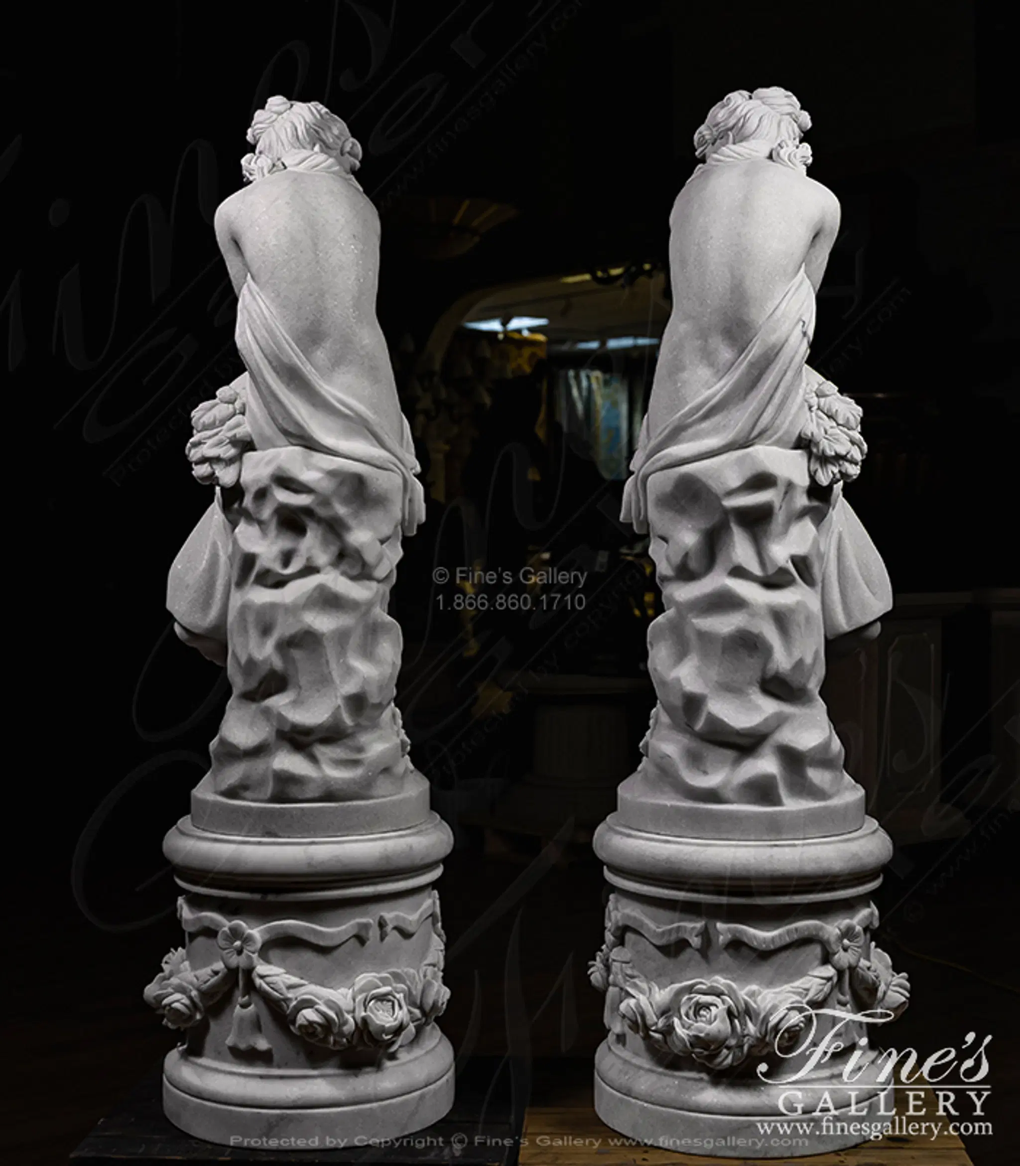 Marble Enchantress Pair Featuring Ornate Rose Garland Pedestals - MS-1485 (View 2)