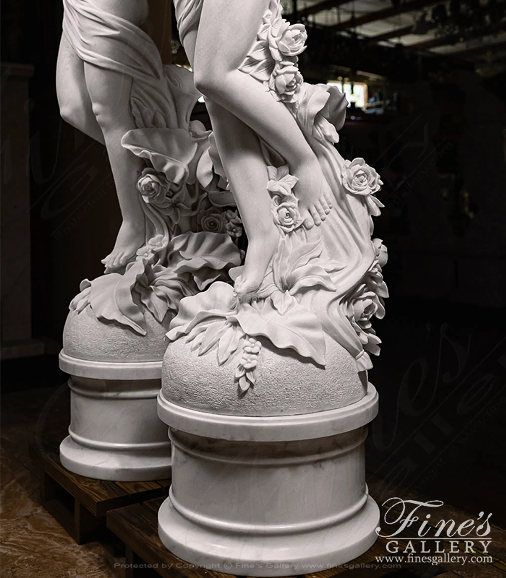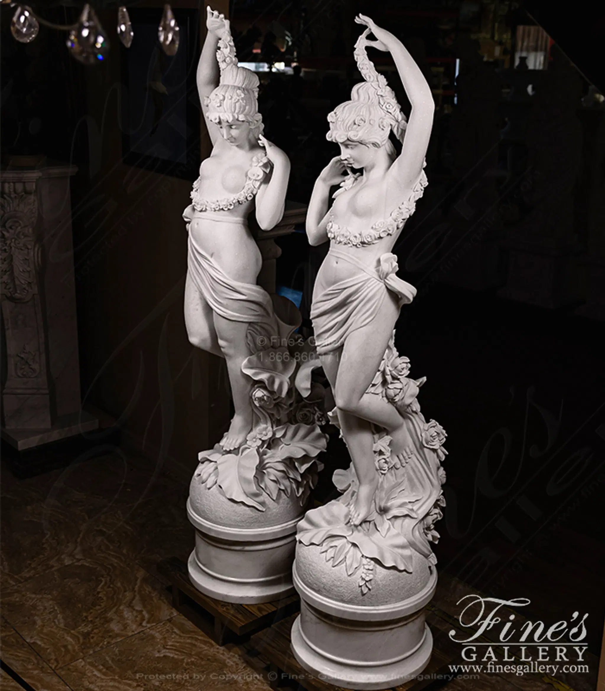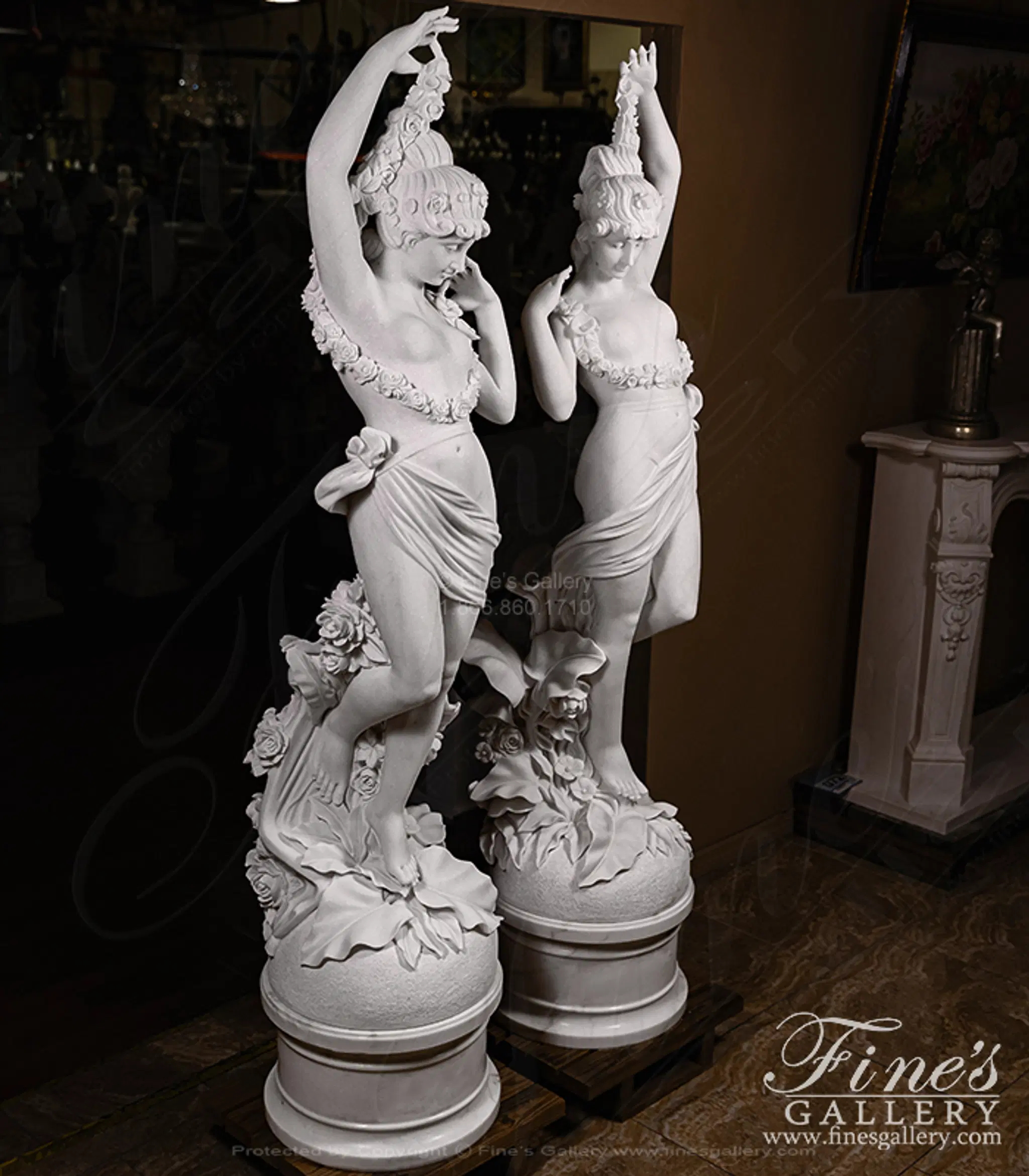 Garden Nymph Statue Pair in Statuary Marble - MS-1522