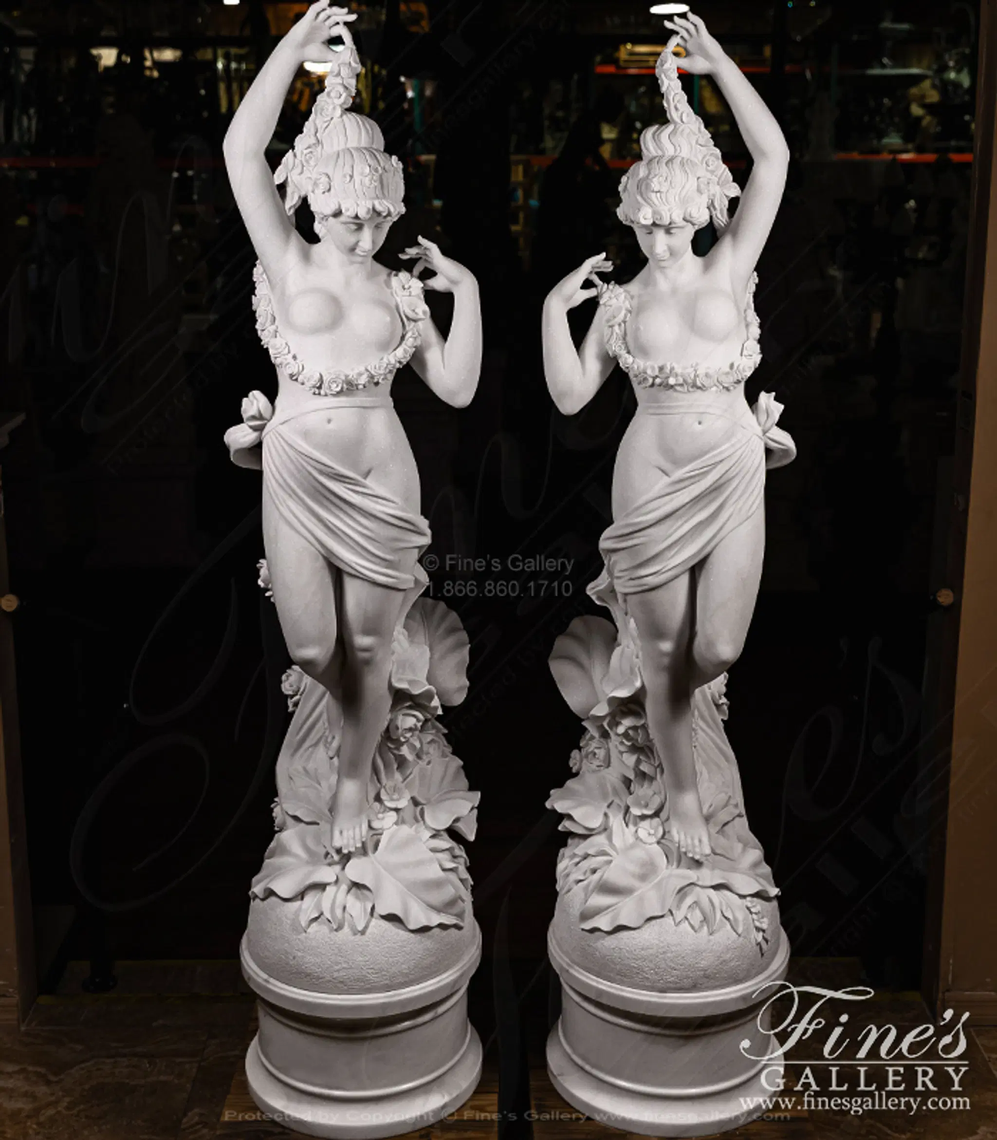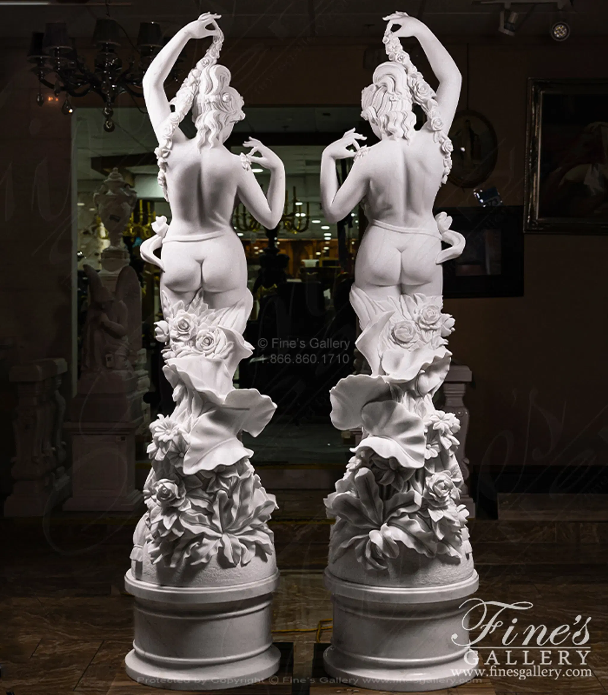 Garden Nymph Statue Pair in Statuary Marble - MS-1522 (View 10)