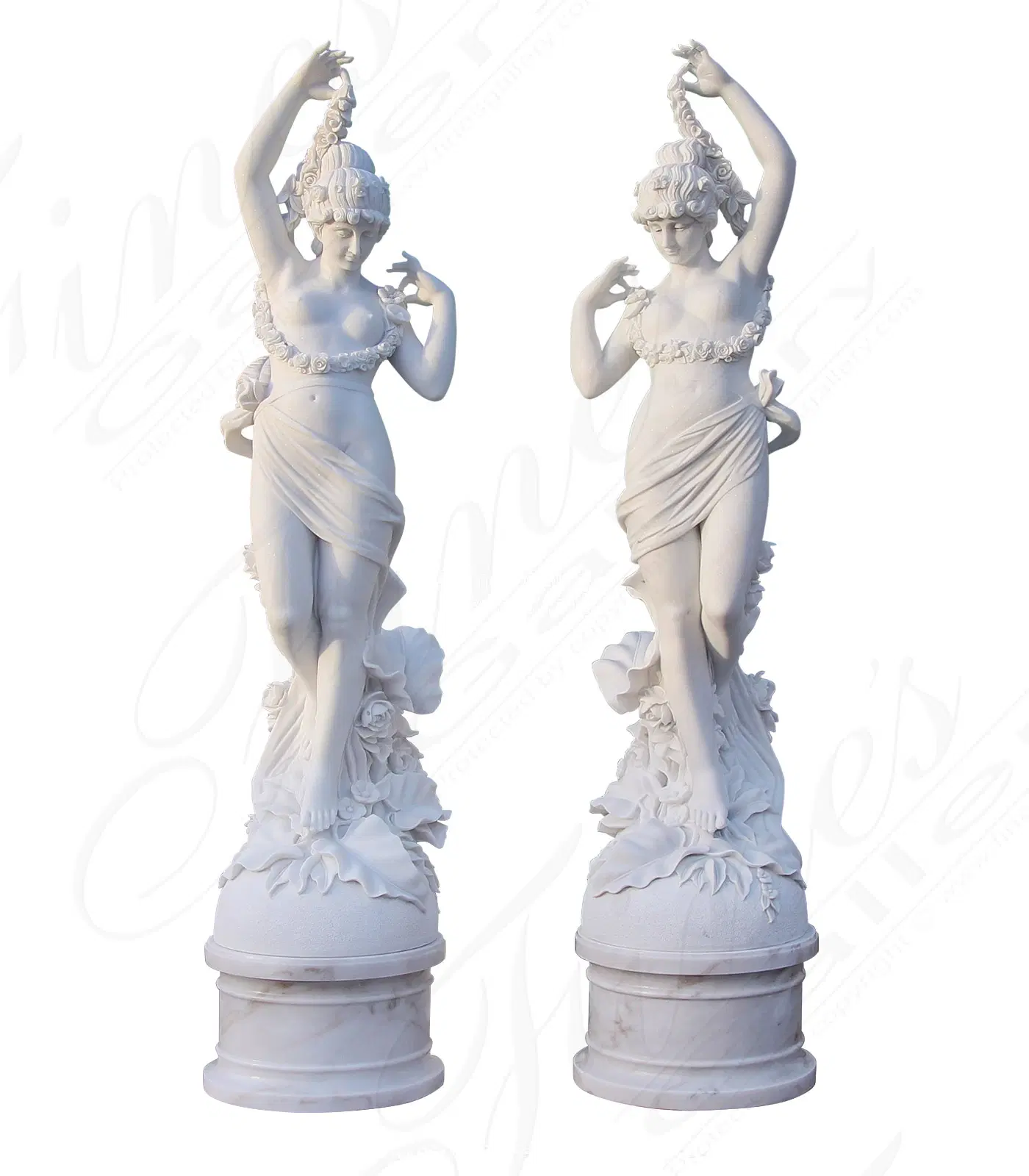 Garden Nymph Statue Pair in Statuary Marble