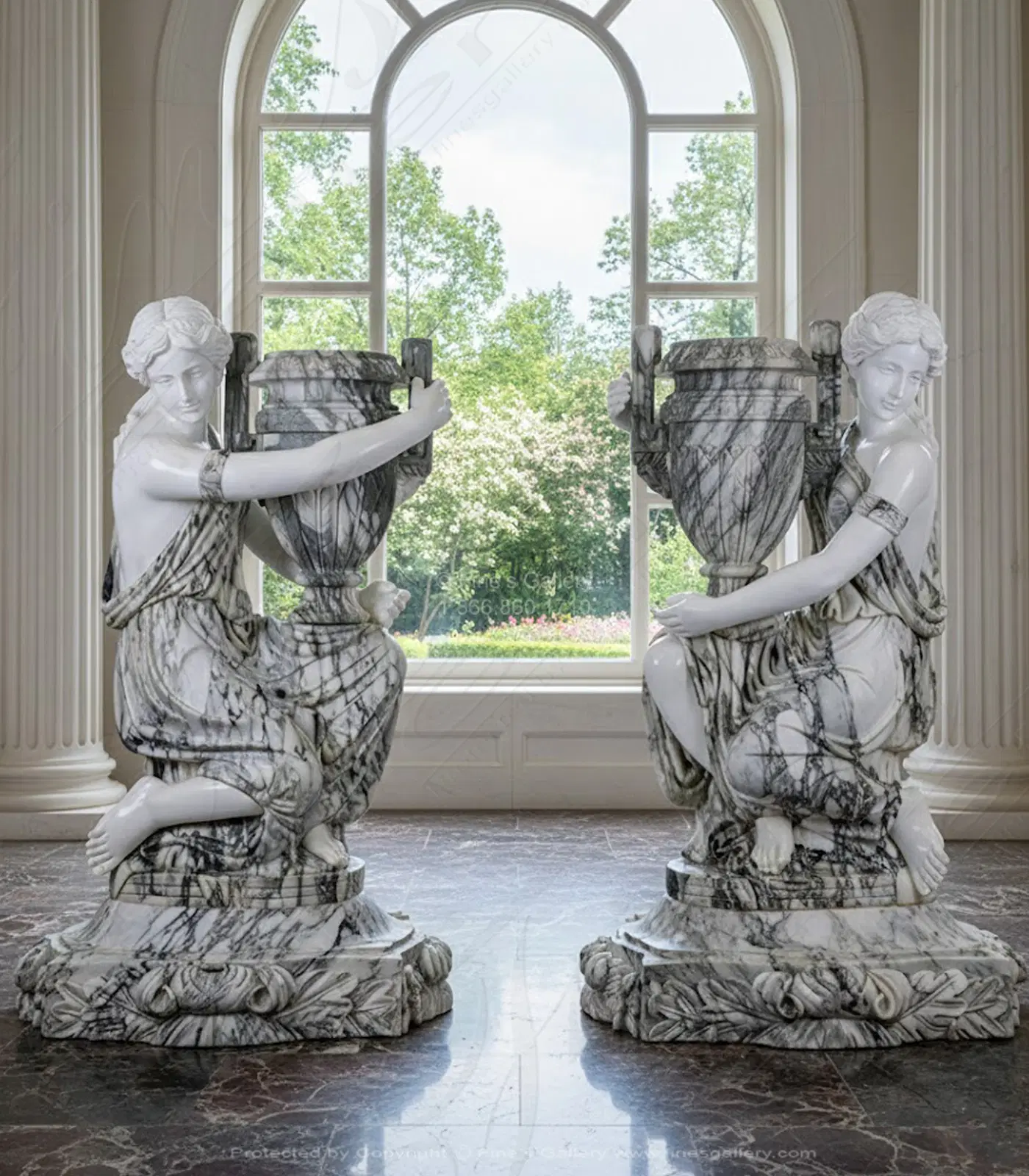 Kneeling Maidens Marble Urn Pair - MS-1564 (View 9)