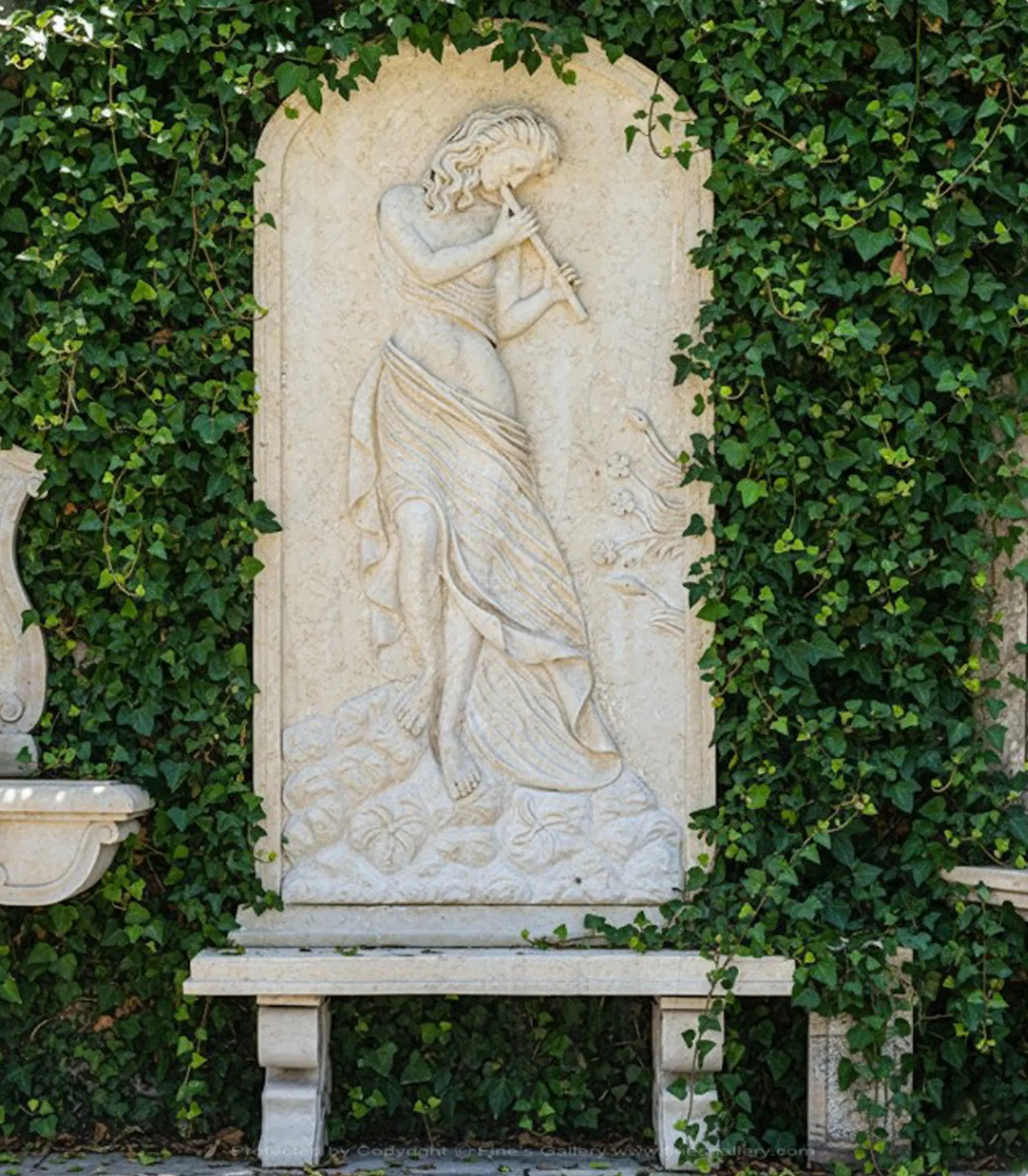 Hand Carved Wall Relief and Bench in Galala Marble - MS-1581
