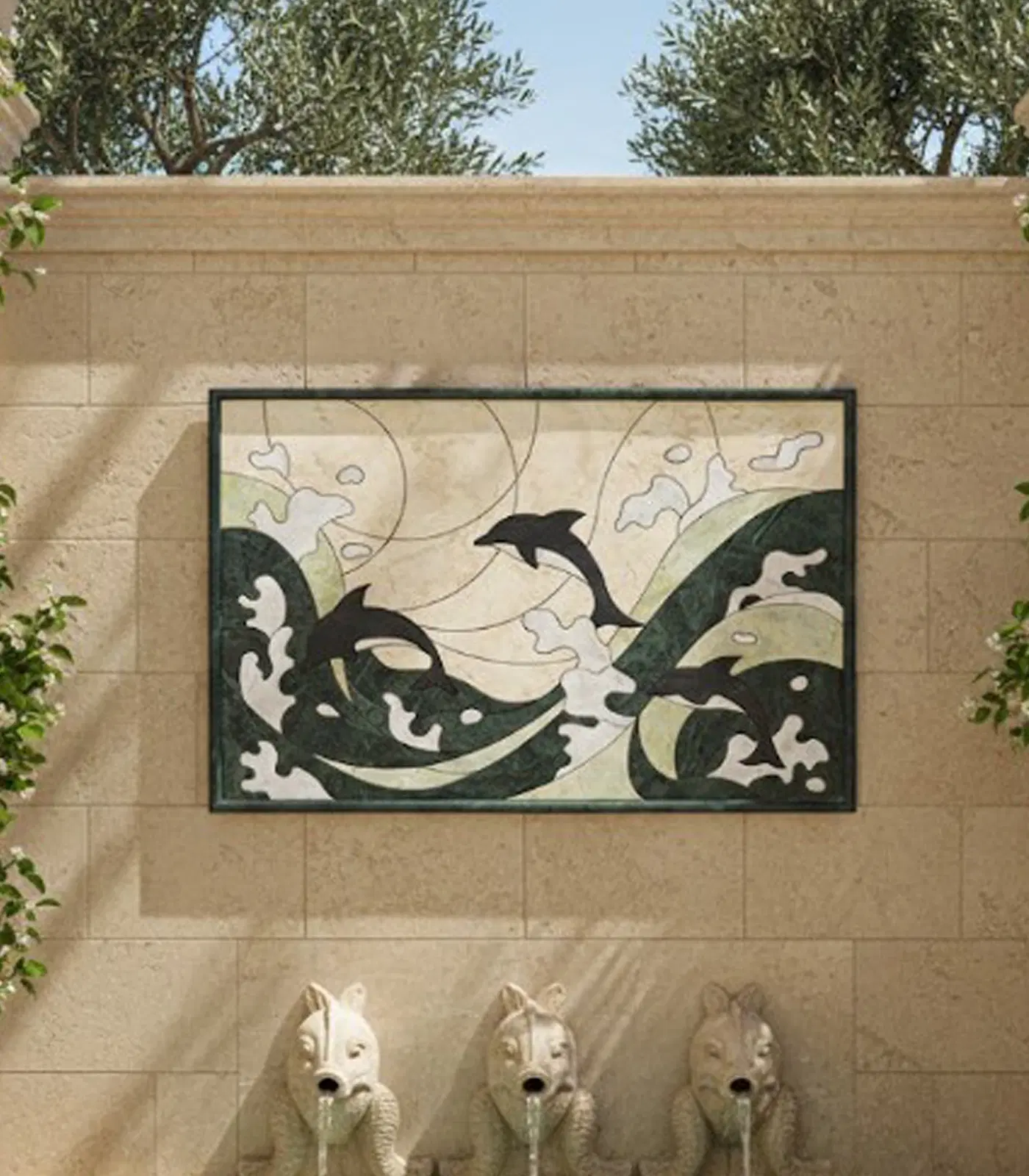 Dolphin Themed Wall Mosaic in Marble - MS-1600