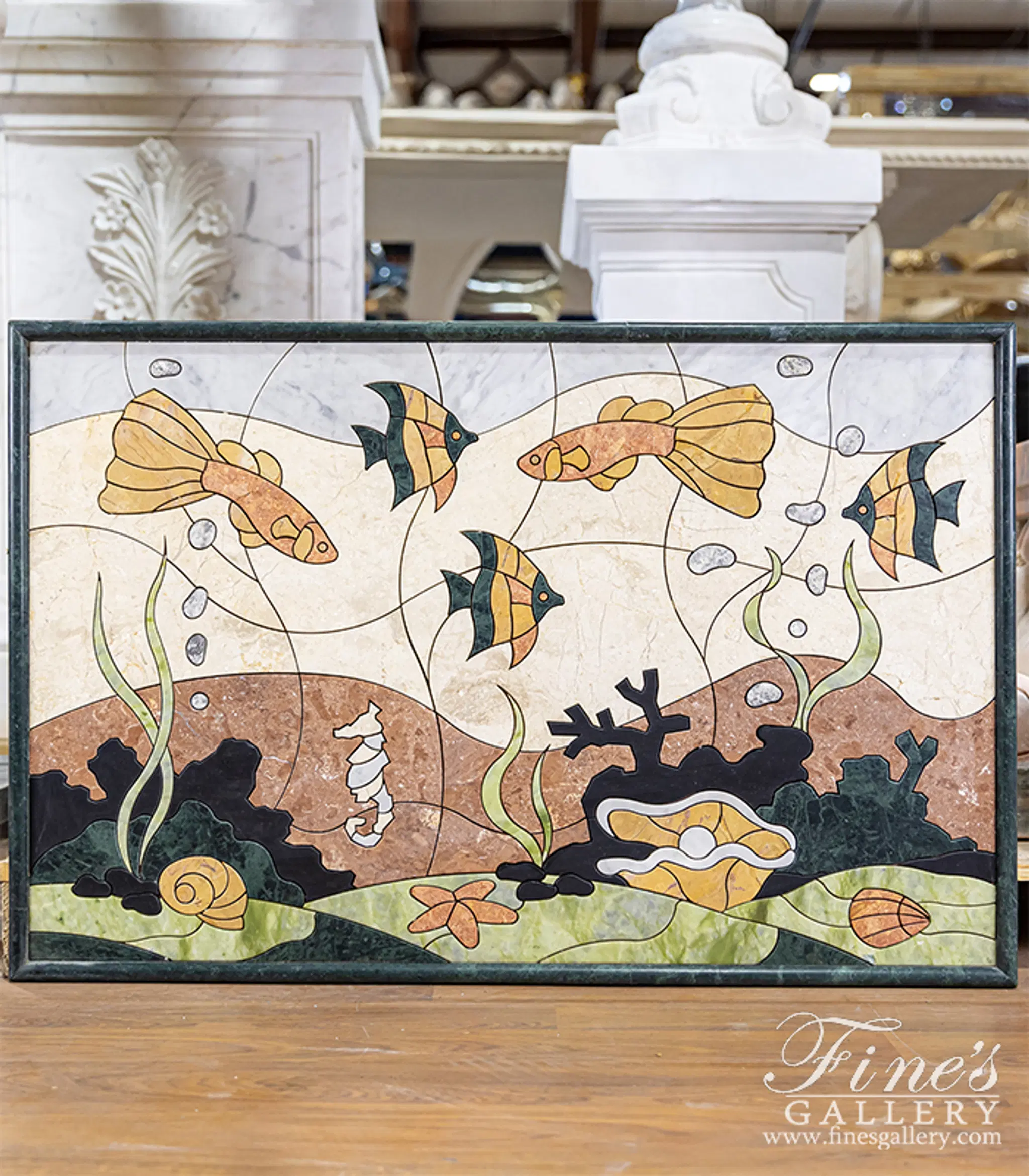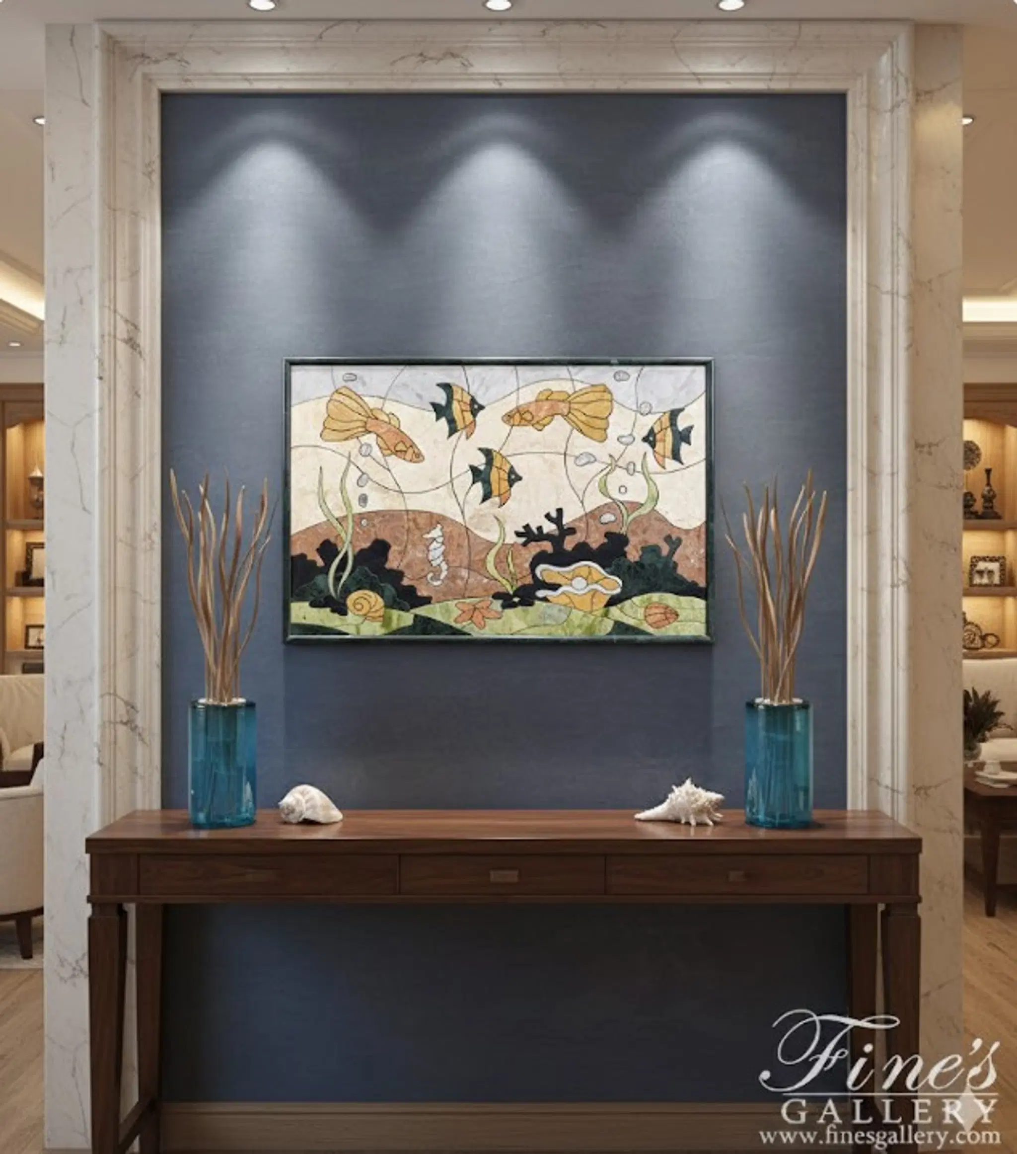 Tropical Fish Marble Mosaic Wall Relief