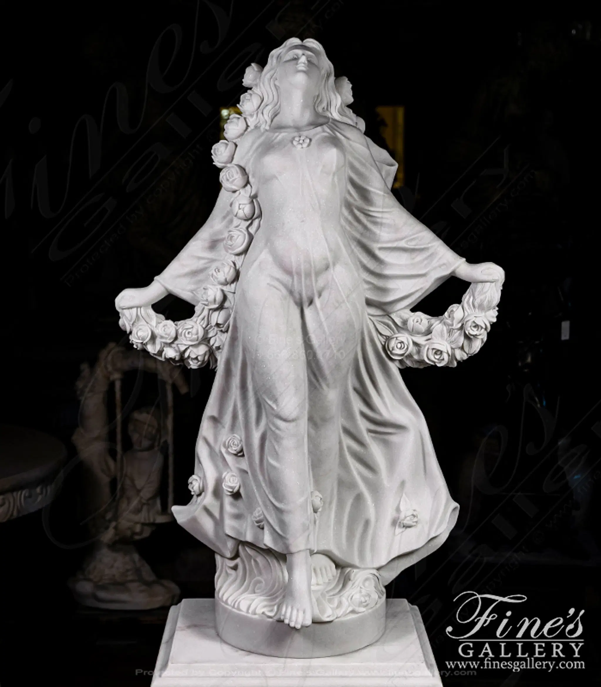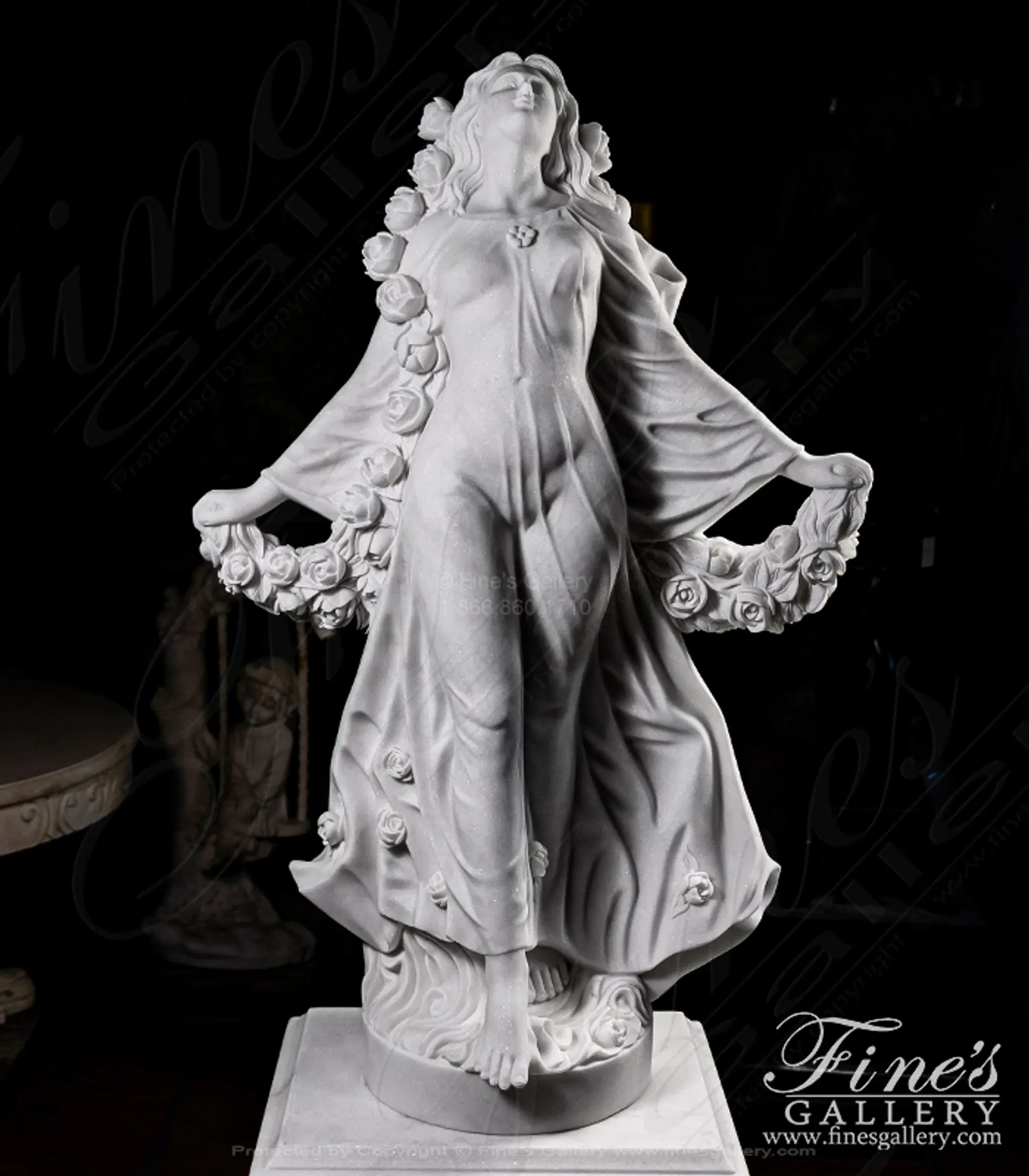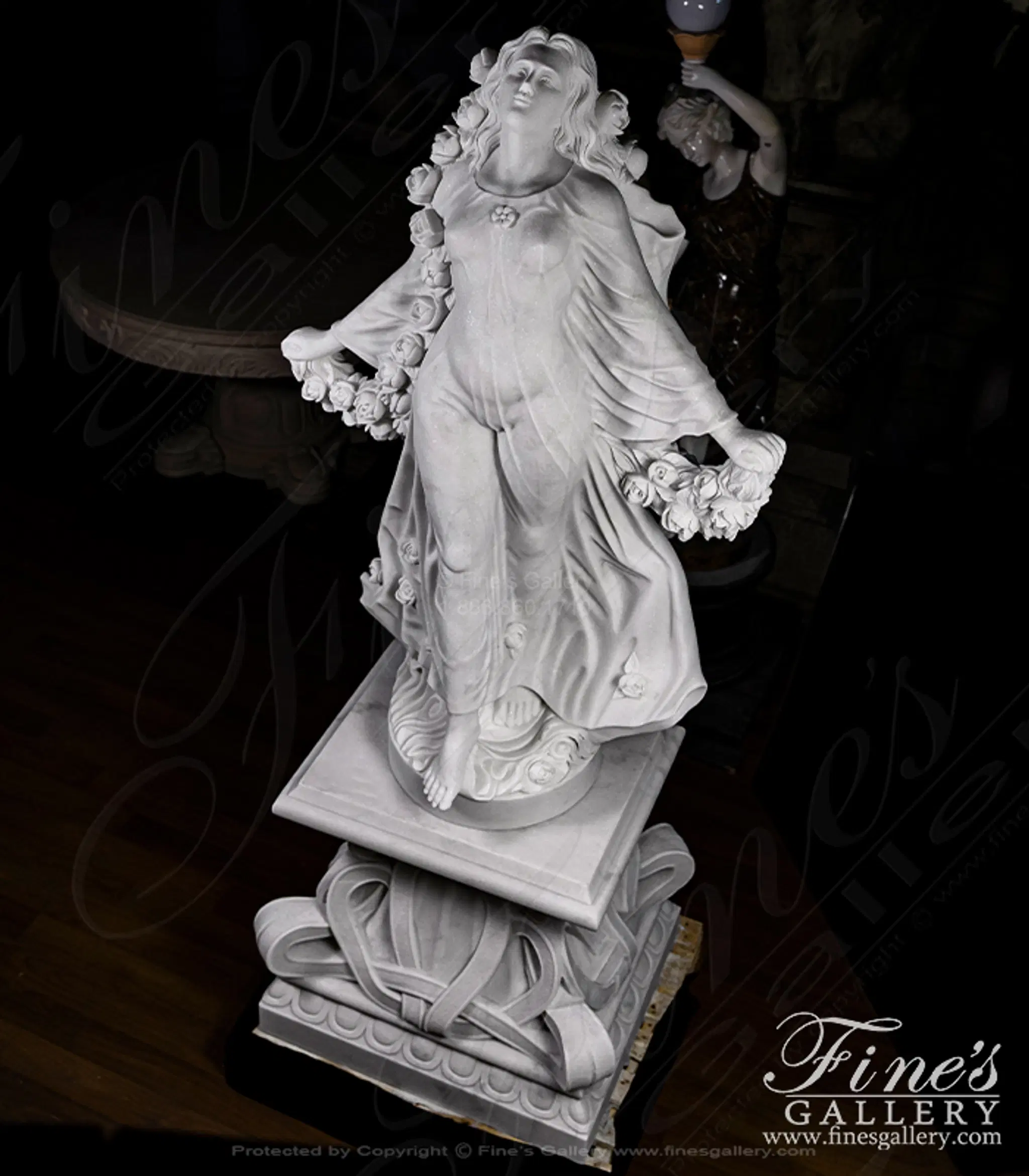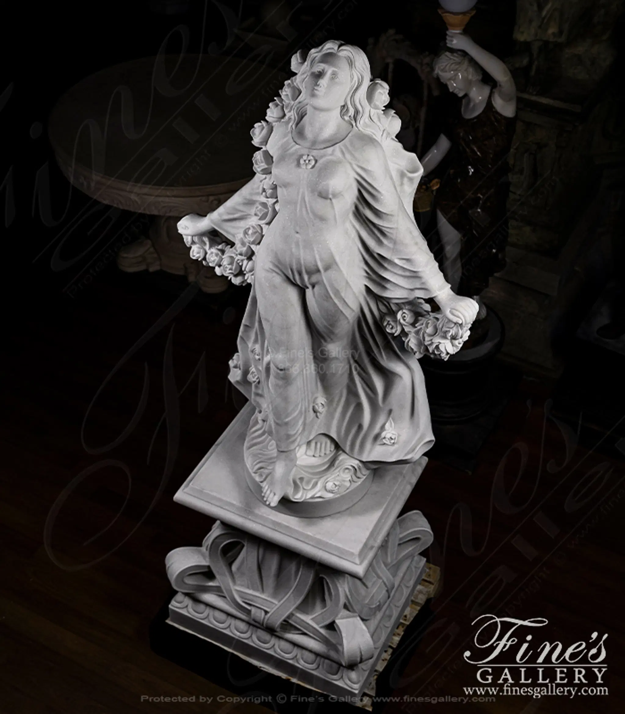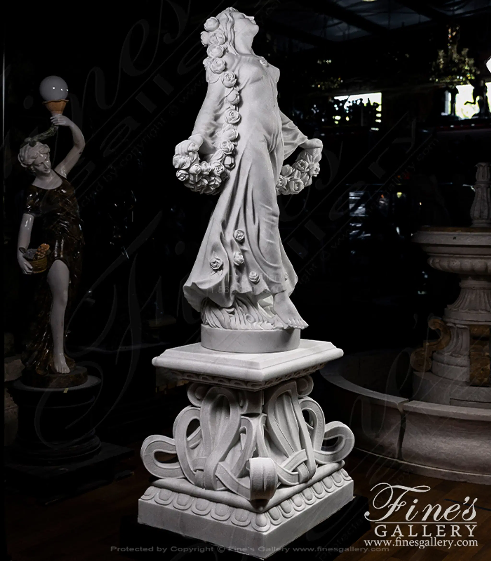 Rose Garland Beauty Statue and Pedestal in Statuary Marble - MS-1630 (View 10)