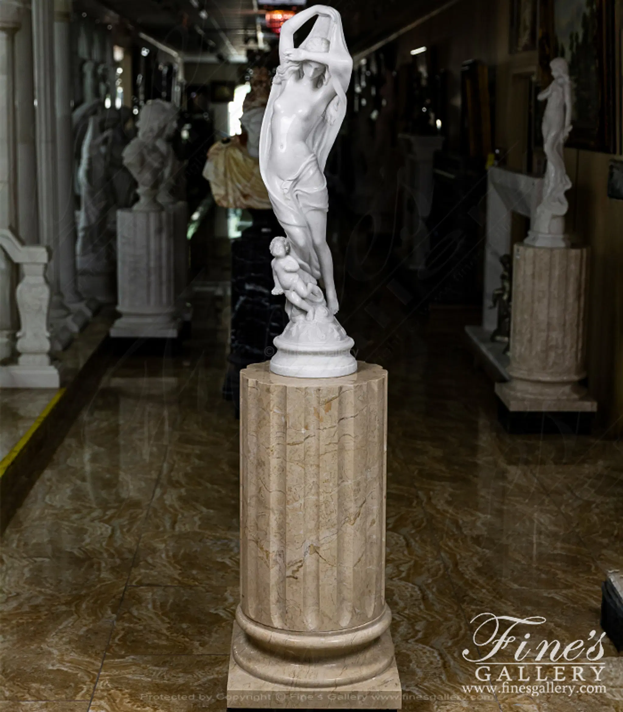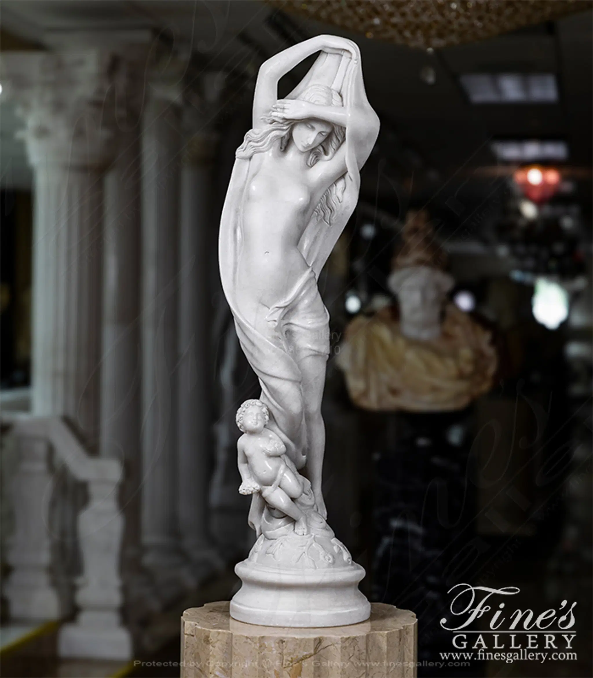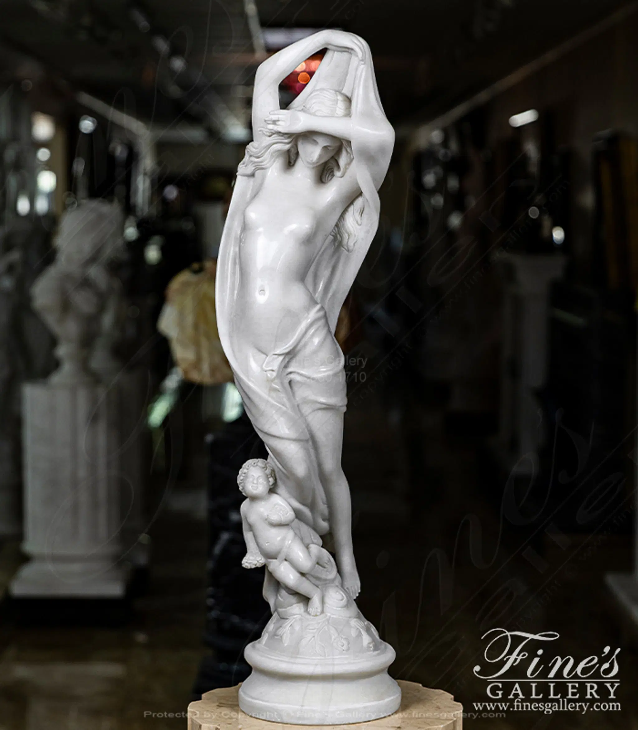 Graceful Half Nude Woman and Child Statue in Polished Statuary Marble - MS-1631 (View 2)