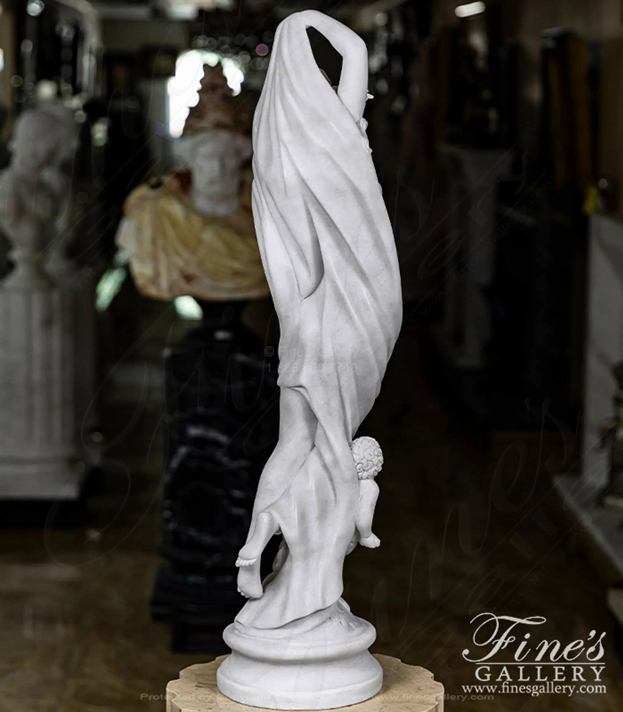 Graceful Half Nude Woman and Child Statue in Polished Statuary Marble - MS-1631 (View 6)