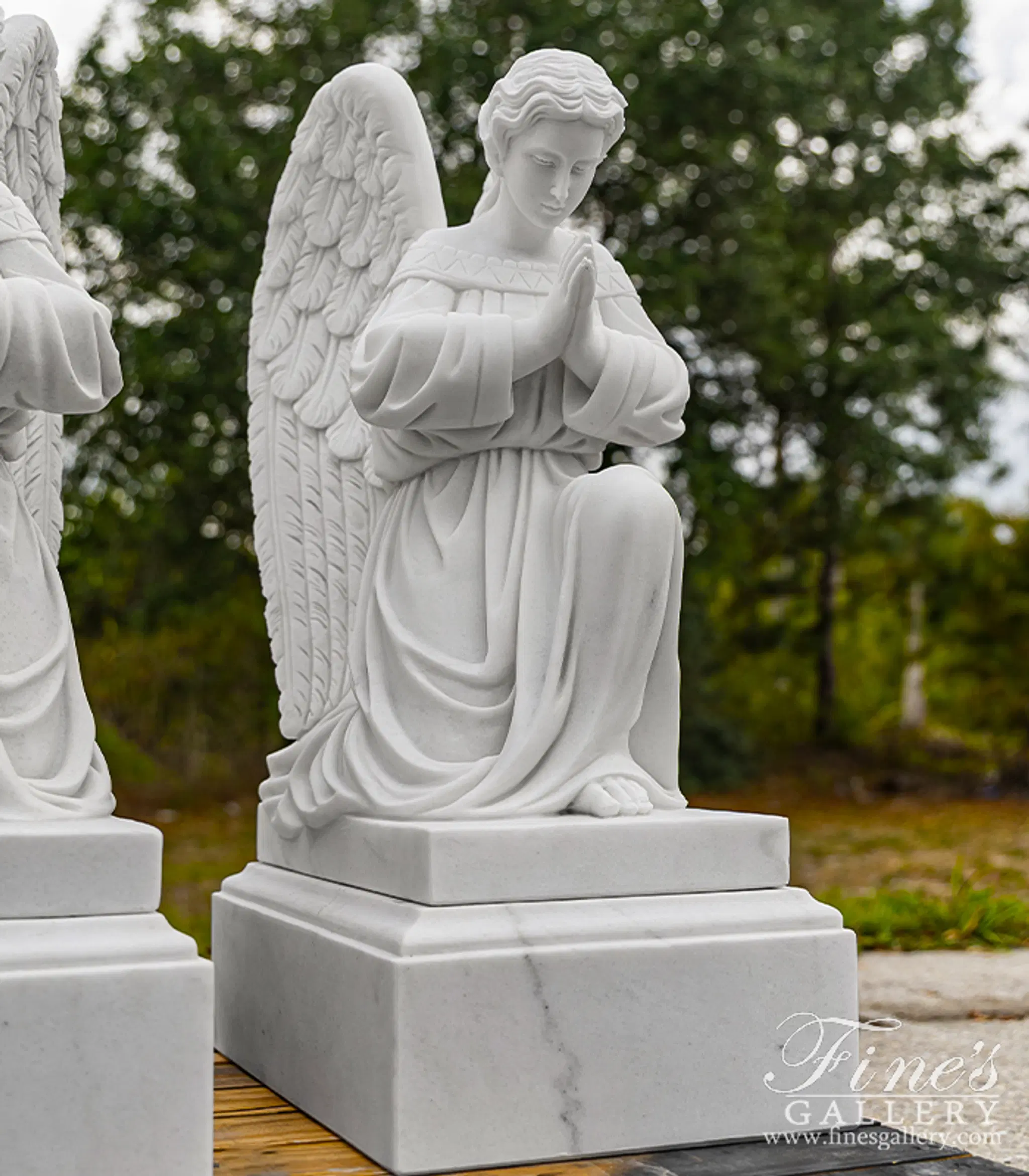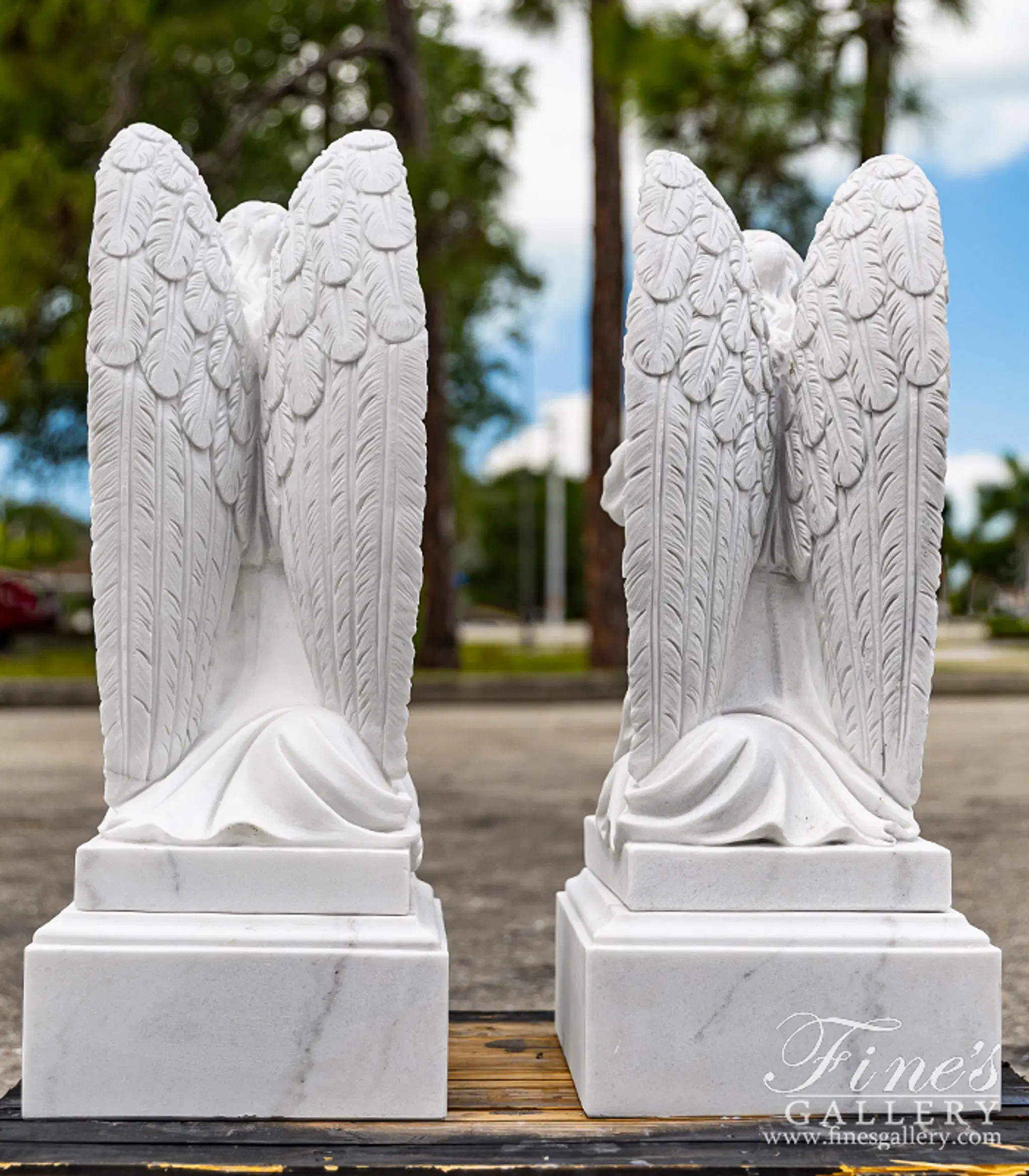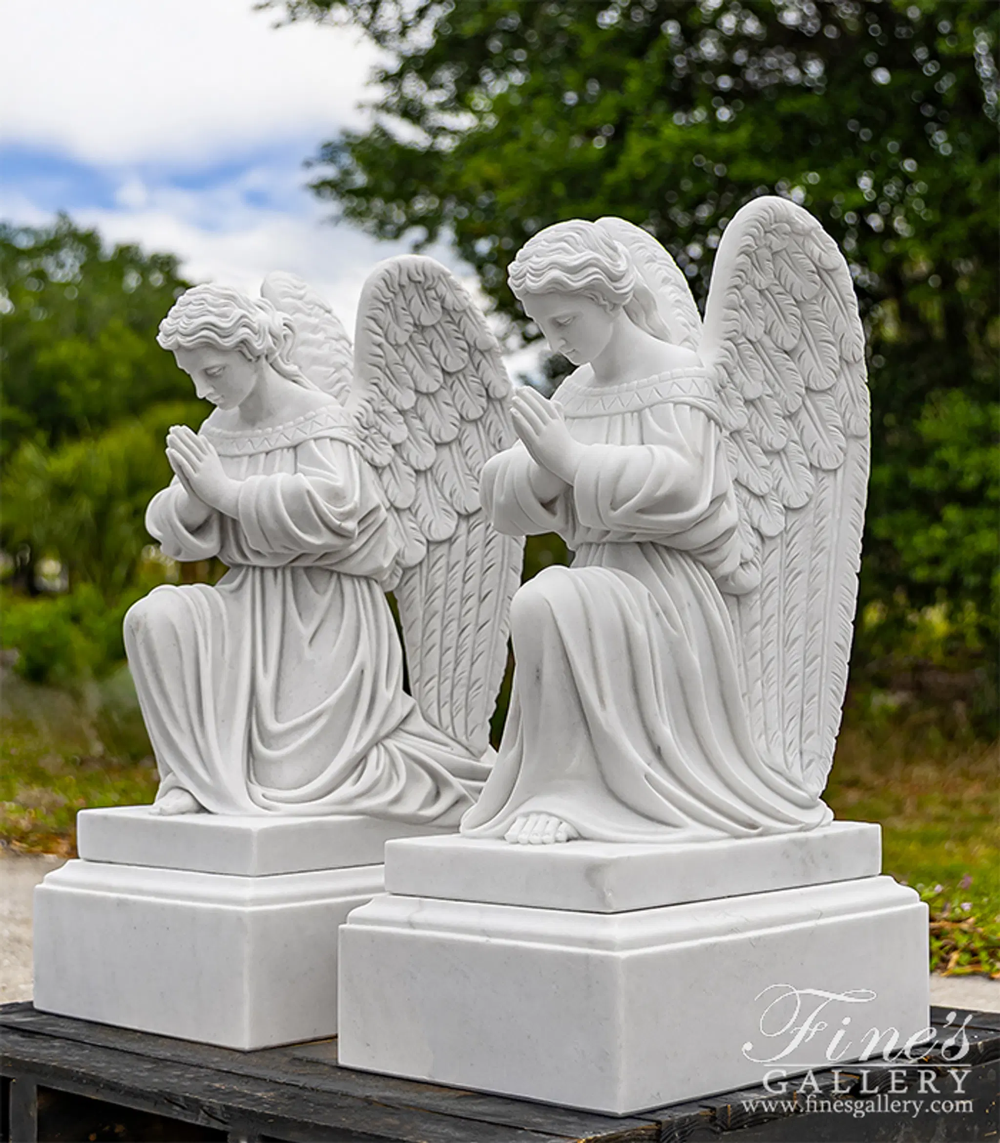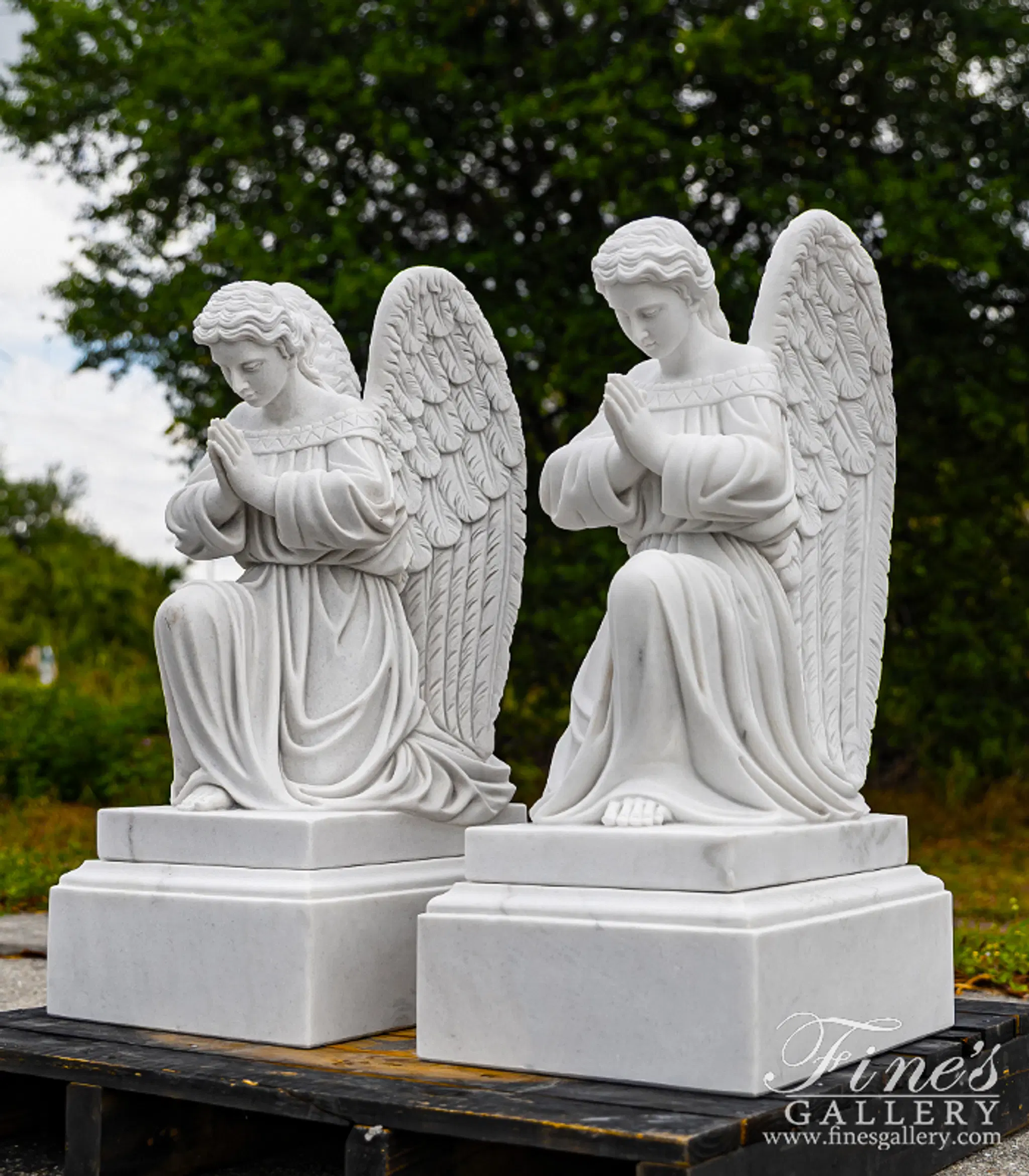 29 1/2" Tall Kneeling Angel Pair in AAA Statuary Marble - MS-1643 (View 9)