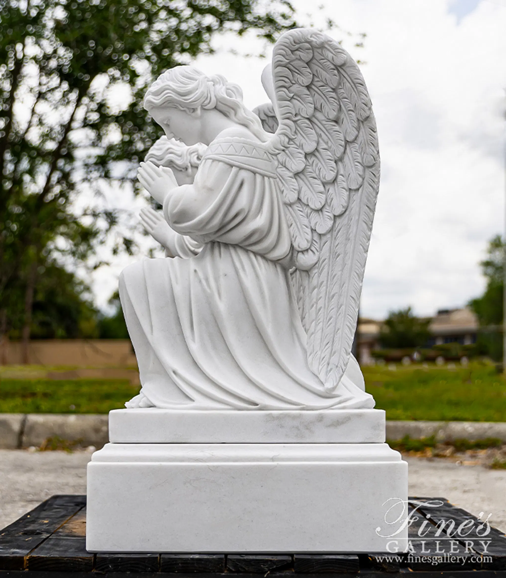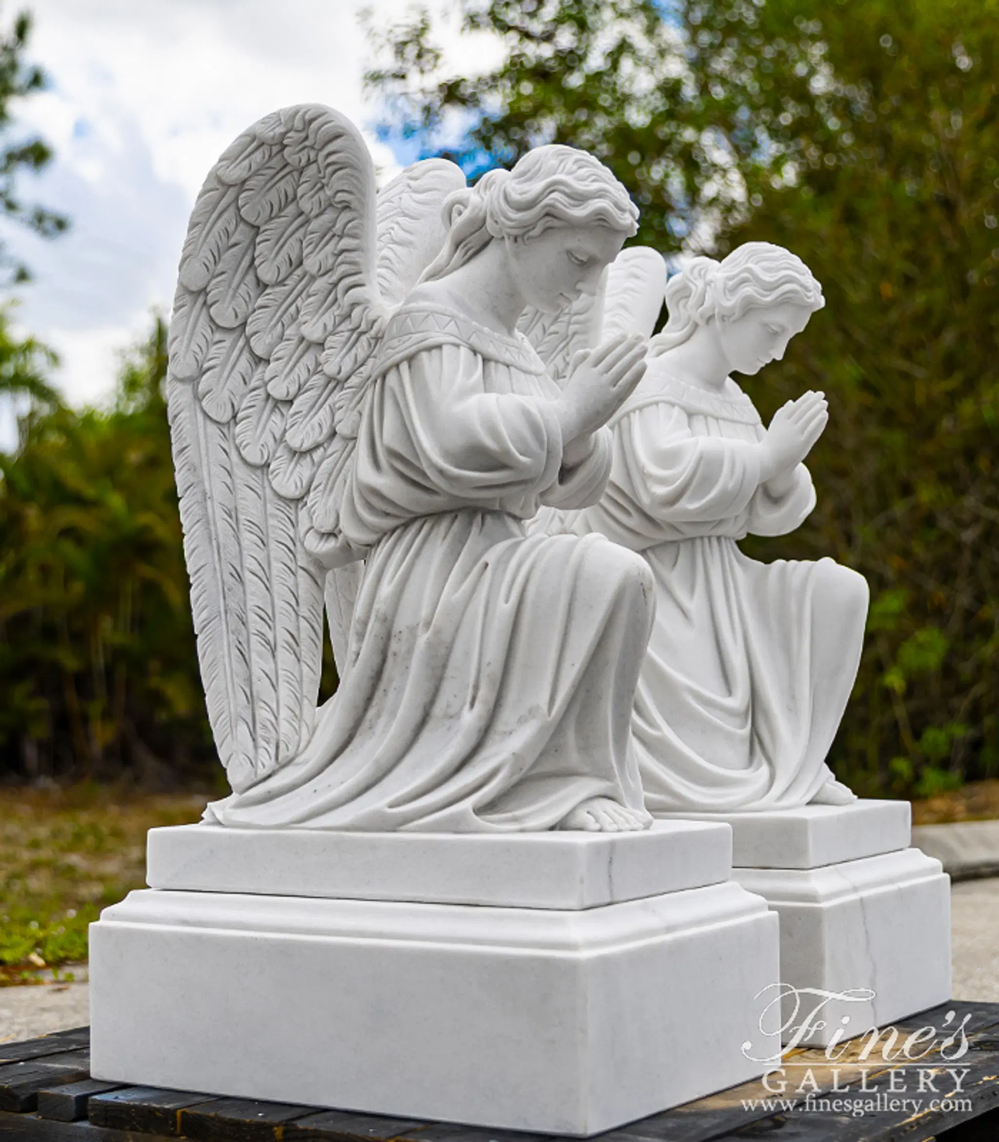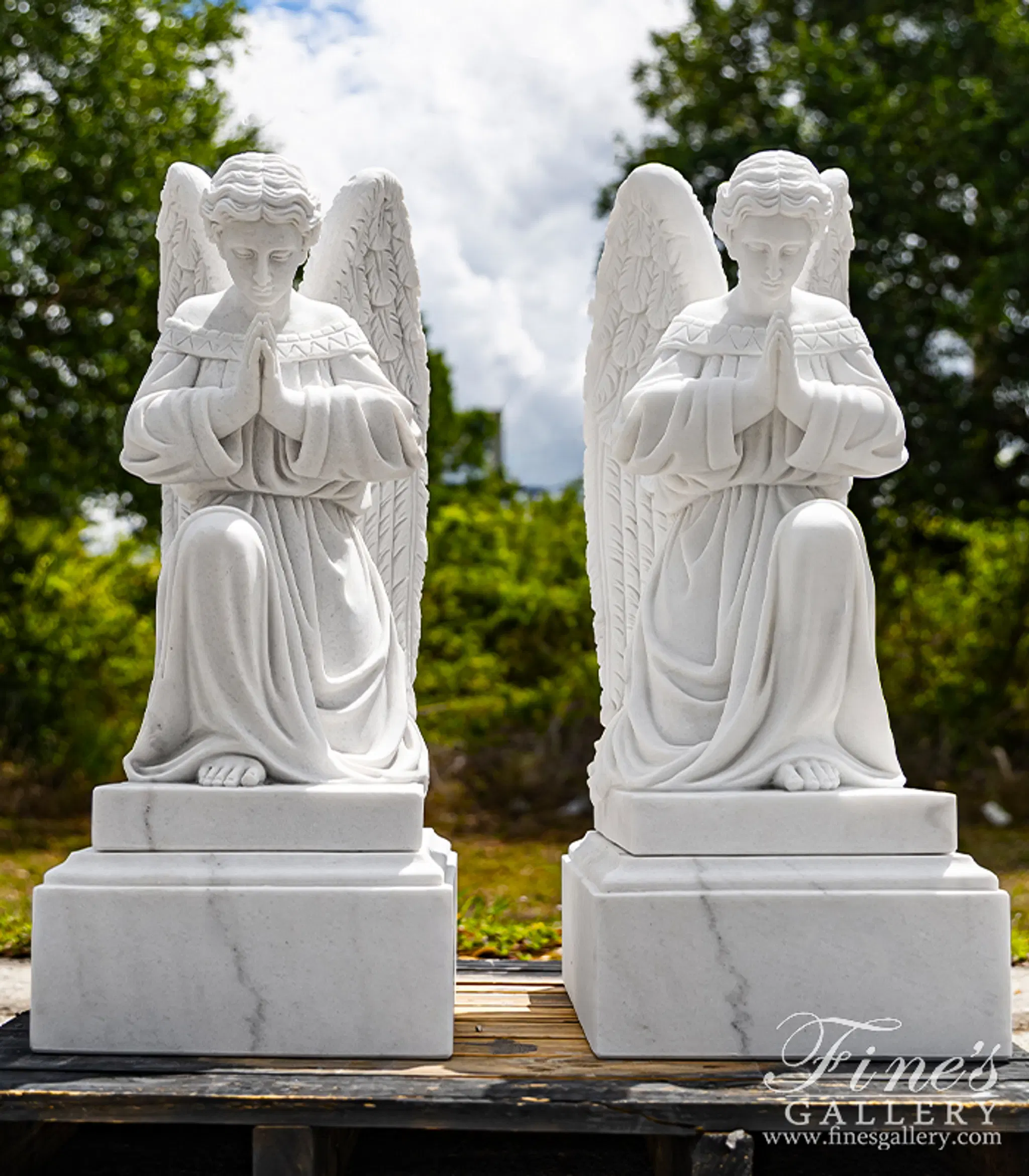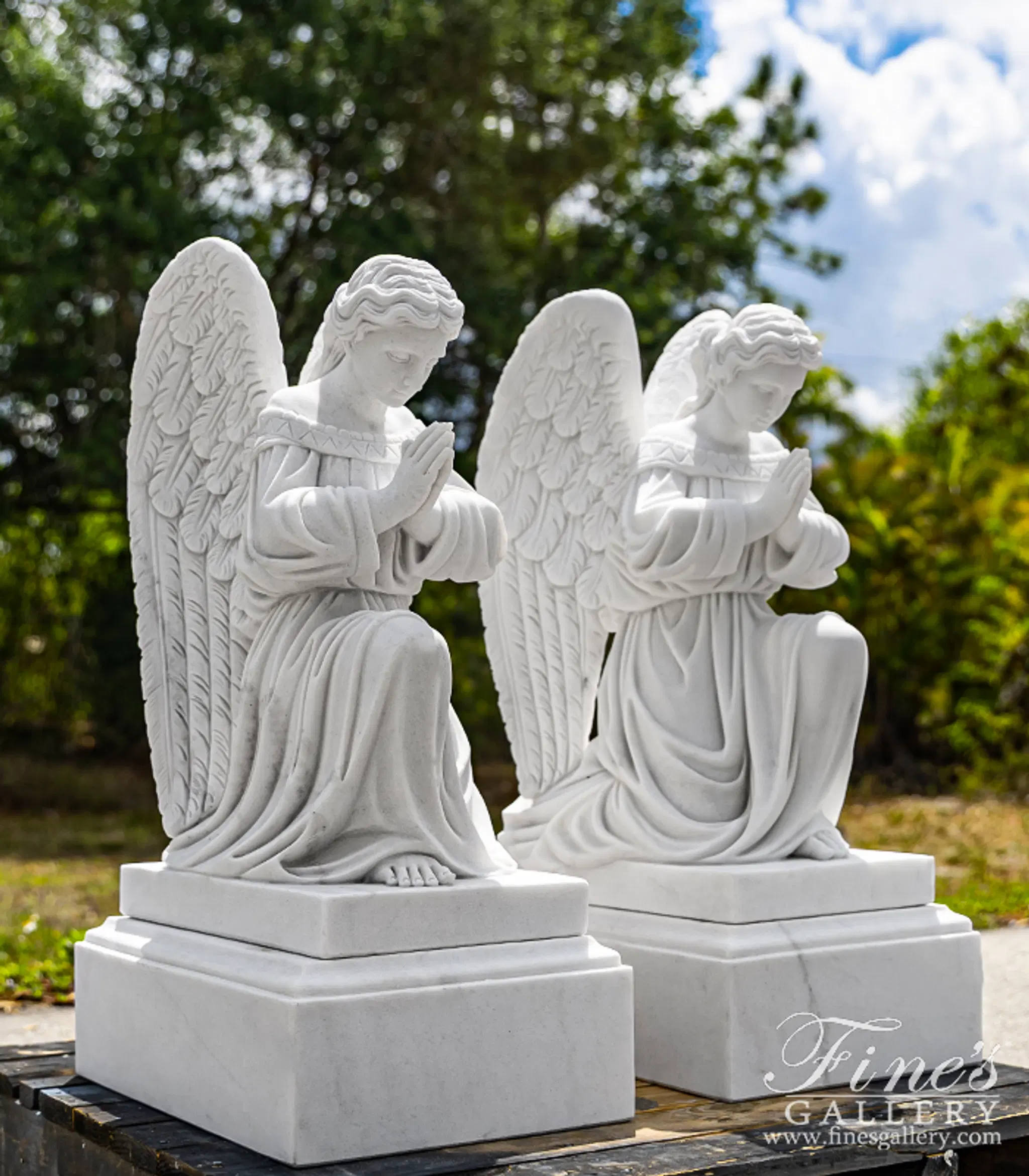 29 1/2" Tall Kneeling Angel Pair in AAA Statuary Marble - MS-1643 (View 9)