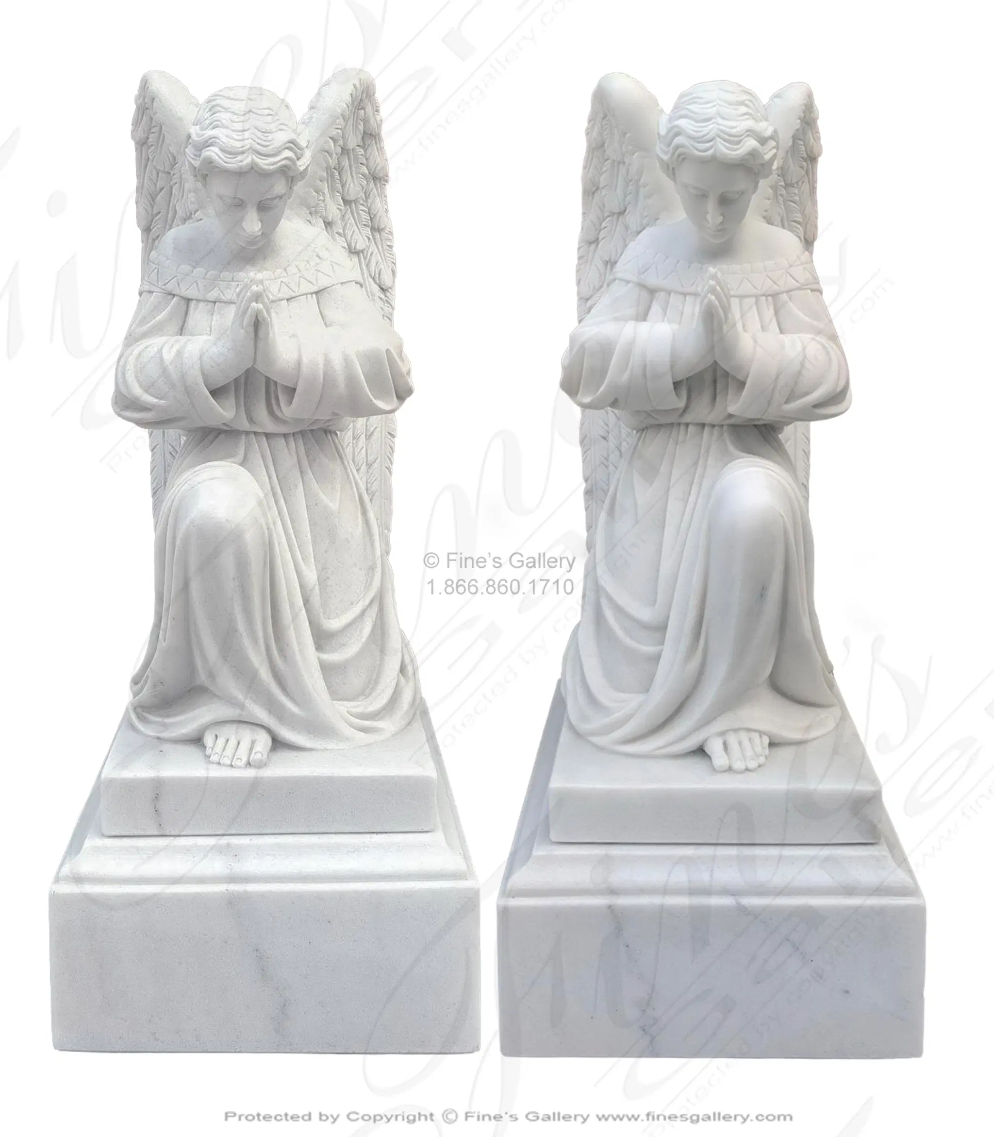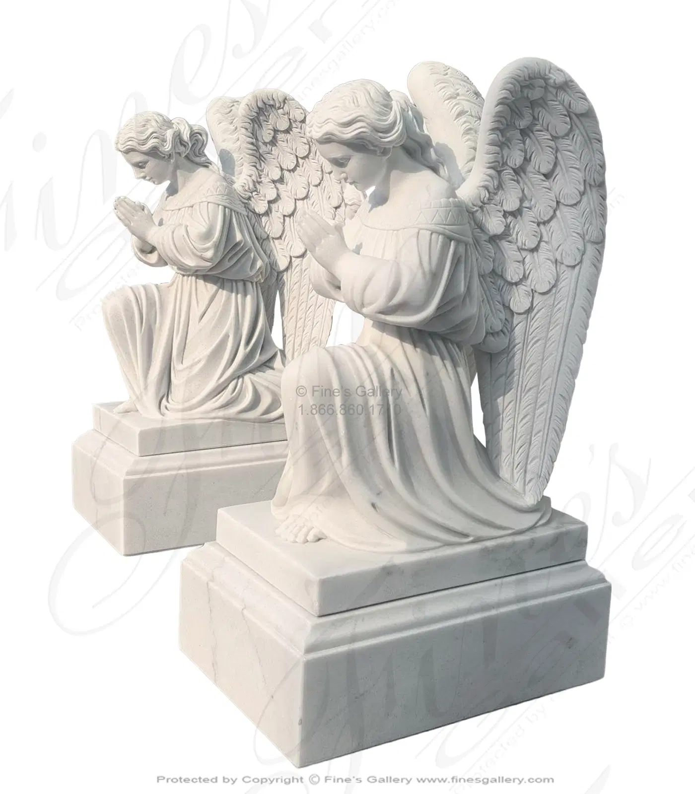 29 1/2" Tall Kneeling Angel Pair in AAA Statuary Marble - MS-1643 (View 3)