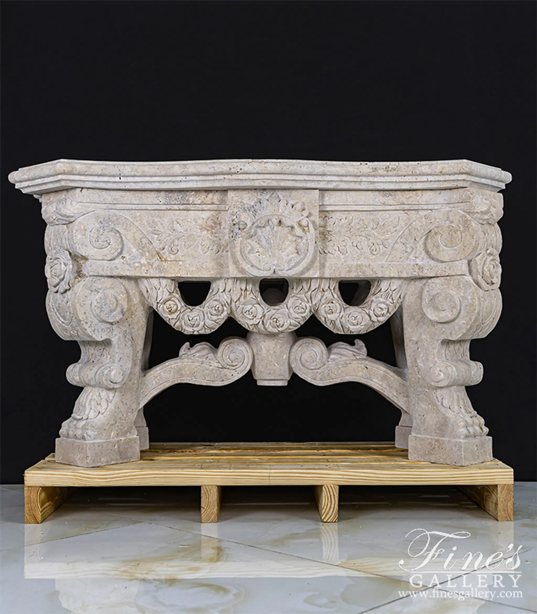 Ornately Carved Table in Classic Light Travertine - MT-266