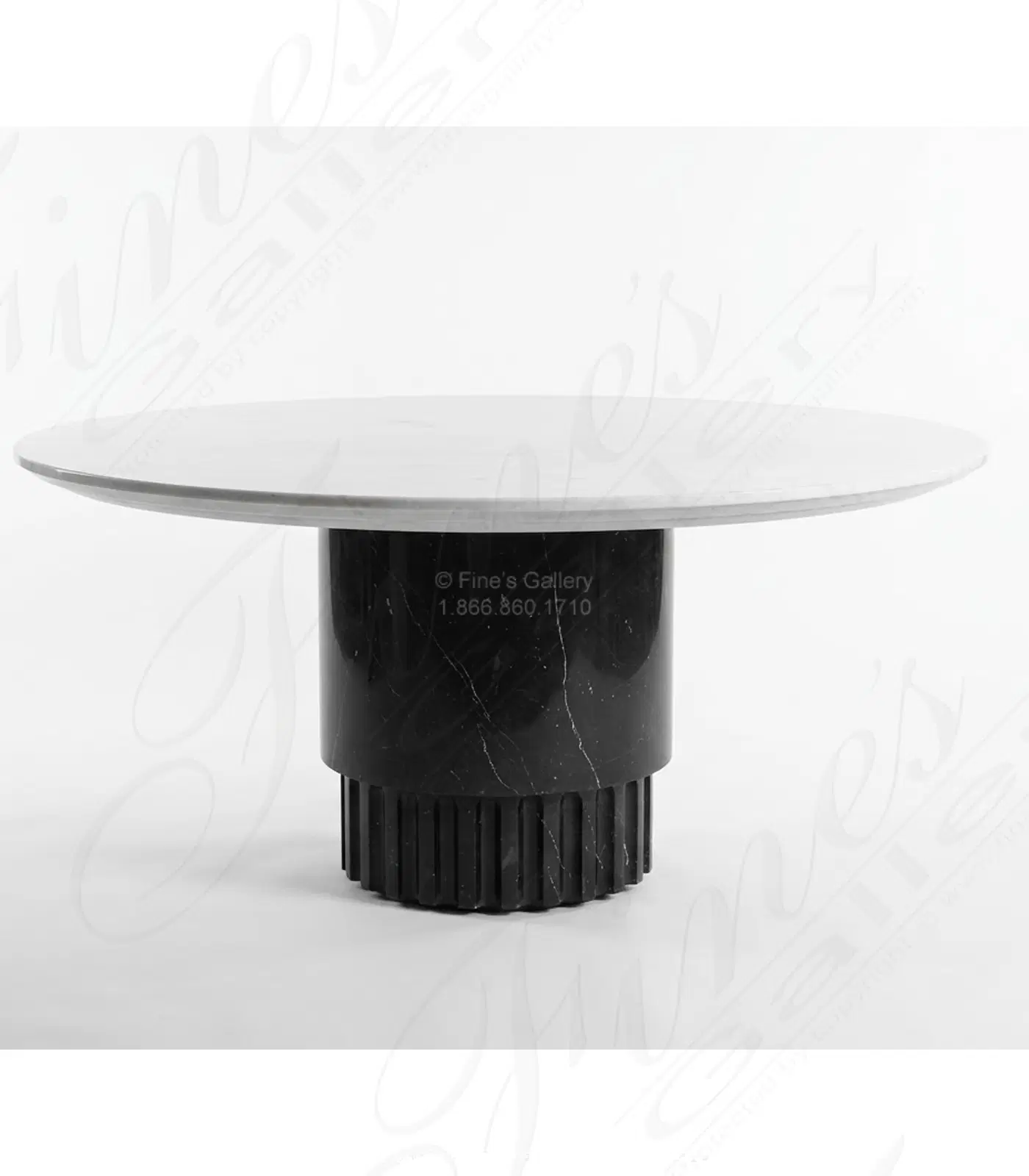 65 Inch Diameter Marble Dining Table in statuary and nero marquina marble.