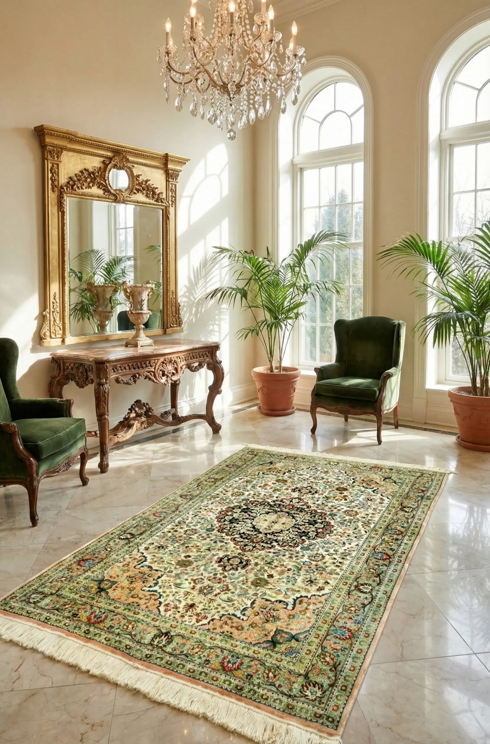 Hand Knotted Silk Rug Rectangle - Jewel Tones on Ivory Background - Luxury Area Rug