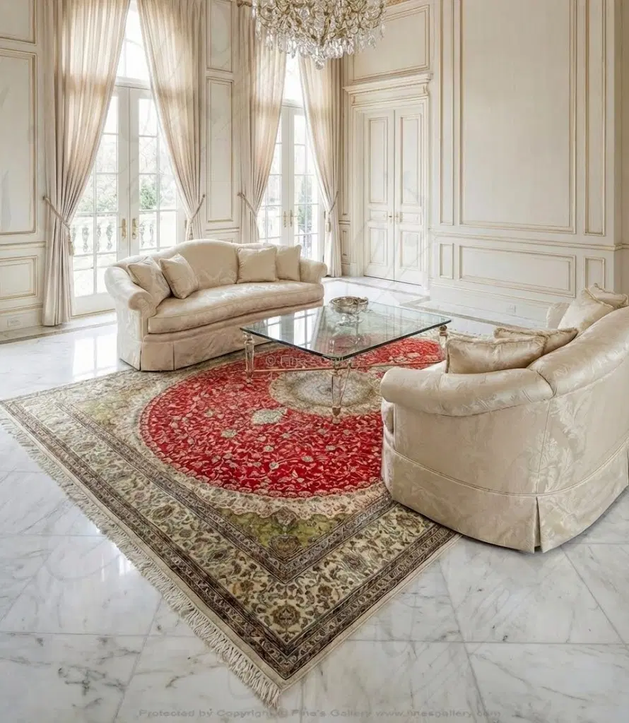 Hand Knotted Silk Rug Rectangle - Red and Ivory with Gold Accents - Luxury Area Rug