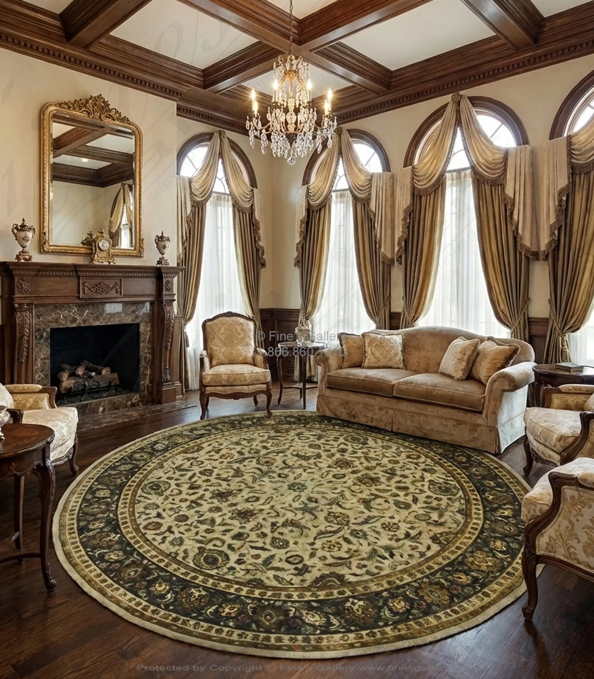 Traditional Round Cream Wool Rug featuring an elegant earth tone design with a brown border. This exquisite piece is entirely hand-knotted using premium wool, showcasing exceptional craftsmanship and durability. The cream-colored field creates a warm, inviting foundation for any room while the traditional pattern adds timeless sophistication to your décor. Perfect for defining seating areas or creating a focal point in entryways and dining rooms. Experience the luxurious texture and artisanal quality that only hand-knotted construction can provide.