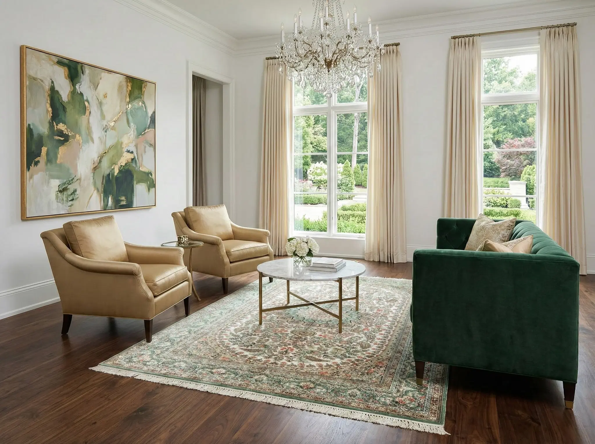 Hand-Knotted Silk Rectangular Rug - Soft Green, Red, and Coral Luxury Design