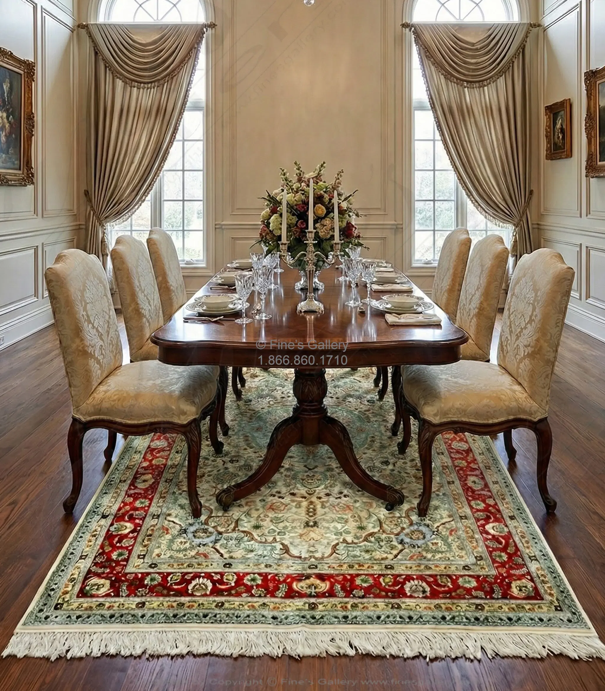 Hand Knotted Silk Rug Rectangle - Ivory Field with Red Border and Jewel Tones