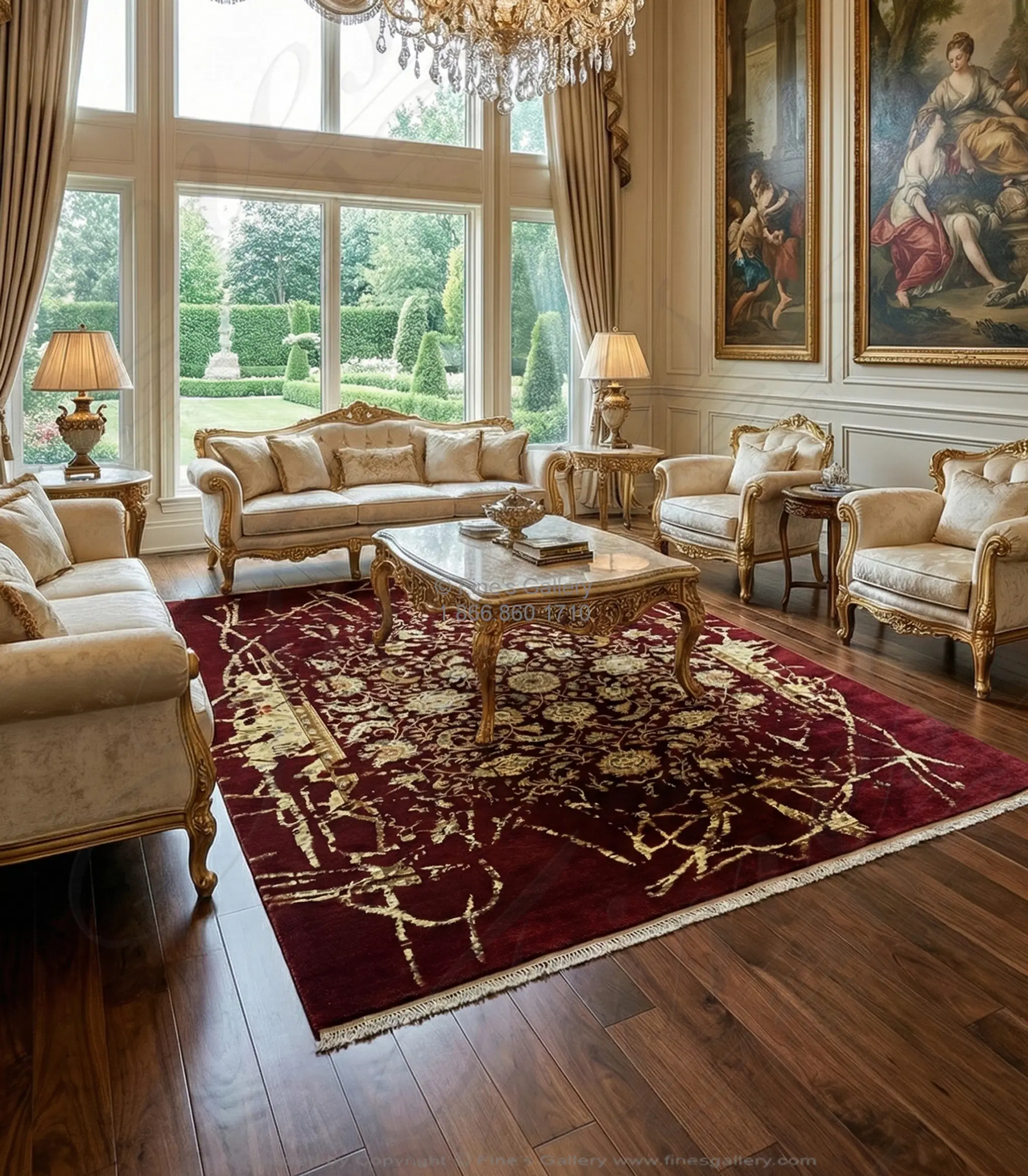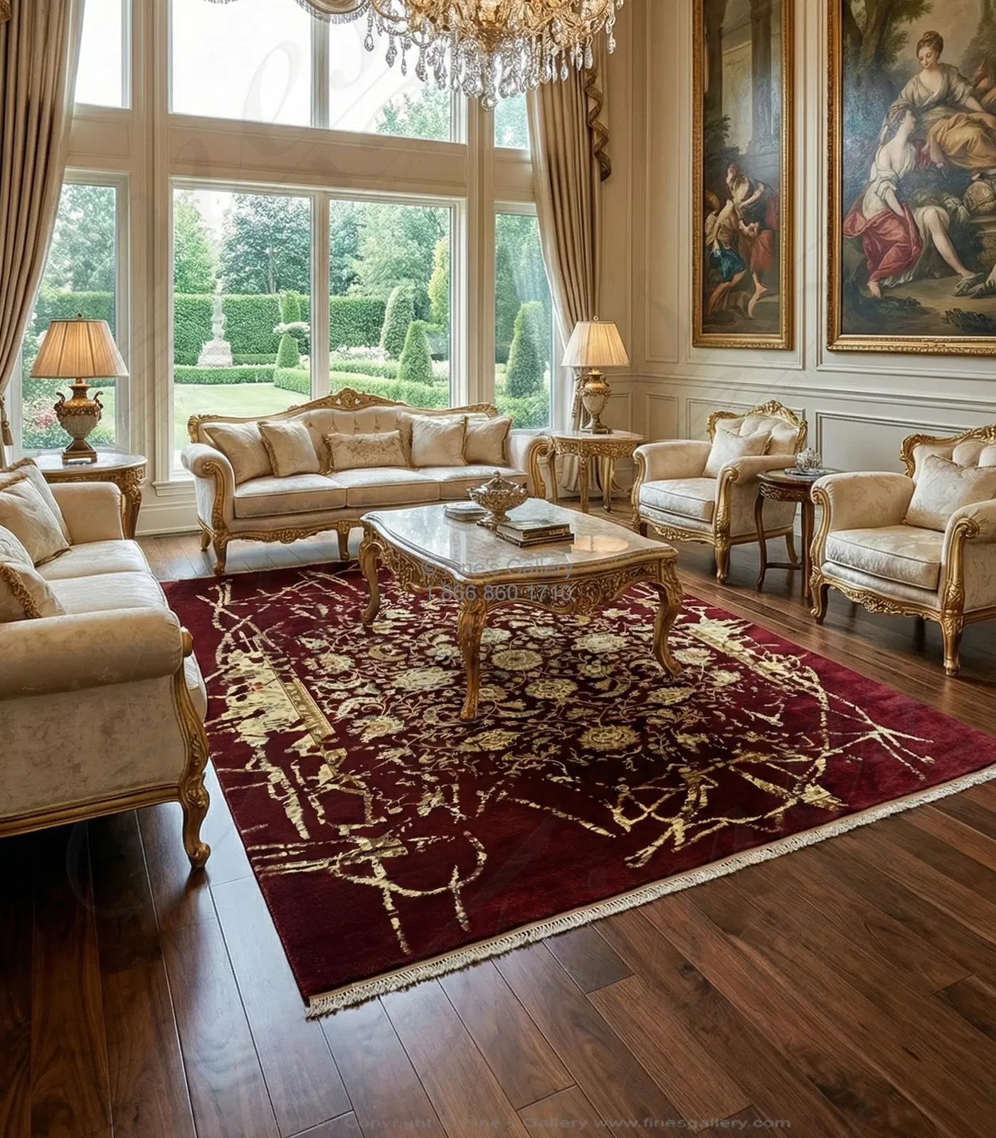Deep Red Hand Knotted Wool Traditional Area Rug Rectangle - Fine's Gallery