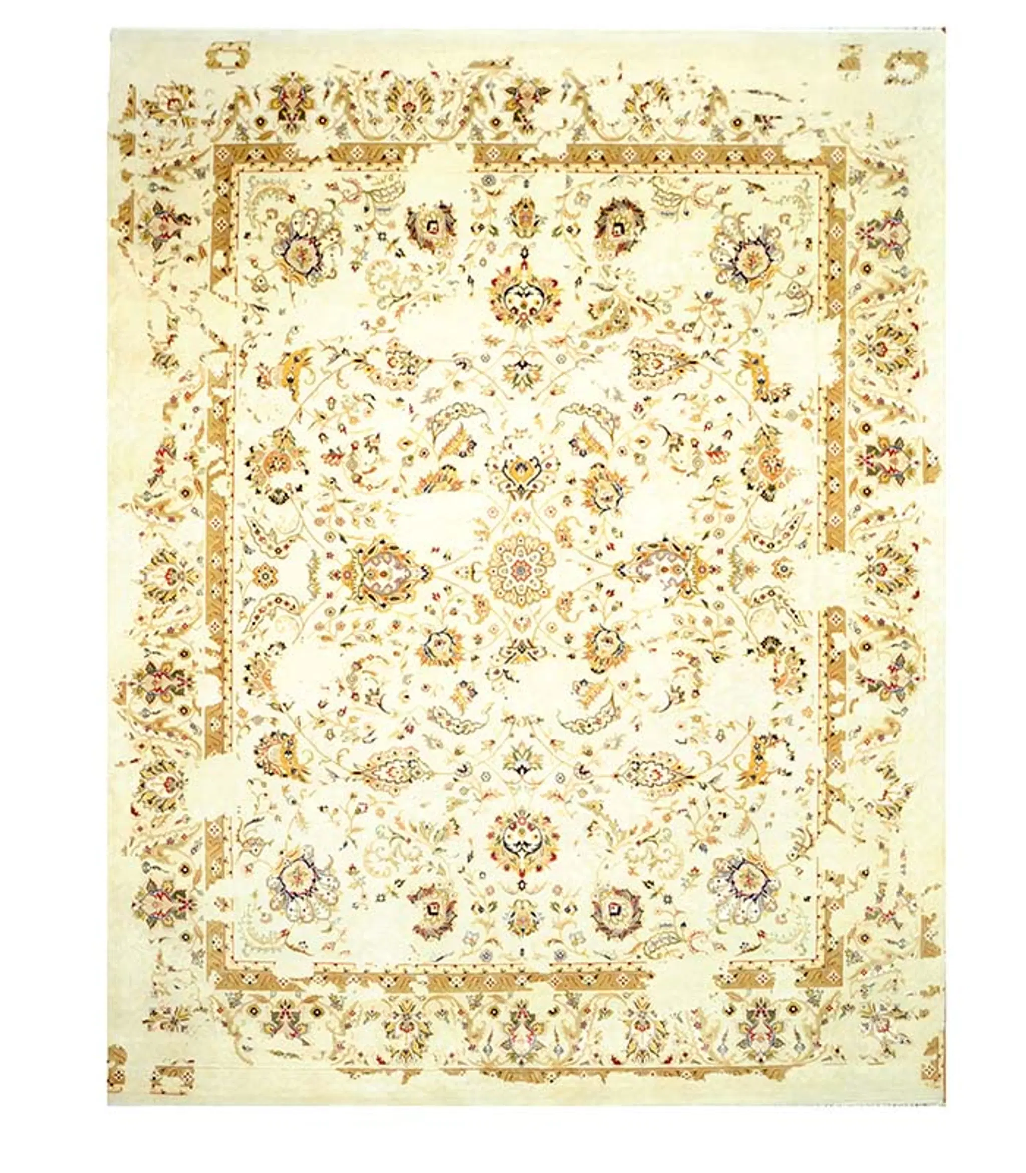 Cream Hand Knotted Wool Area Rug with Faded Traditional Pattern - Rectangle - Fine's Gallery