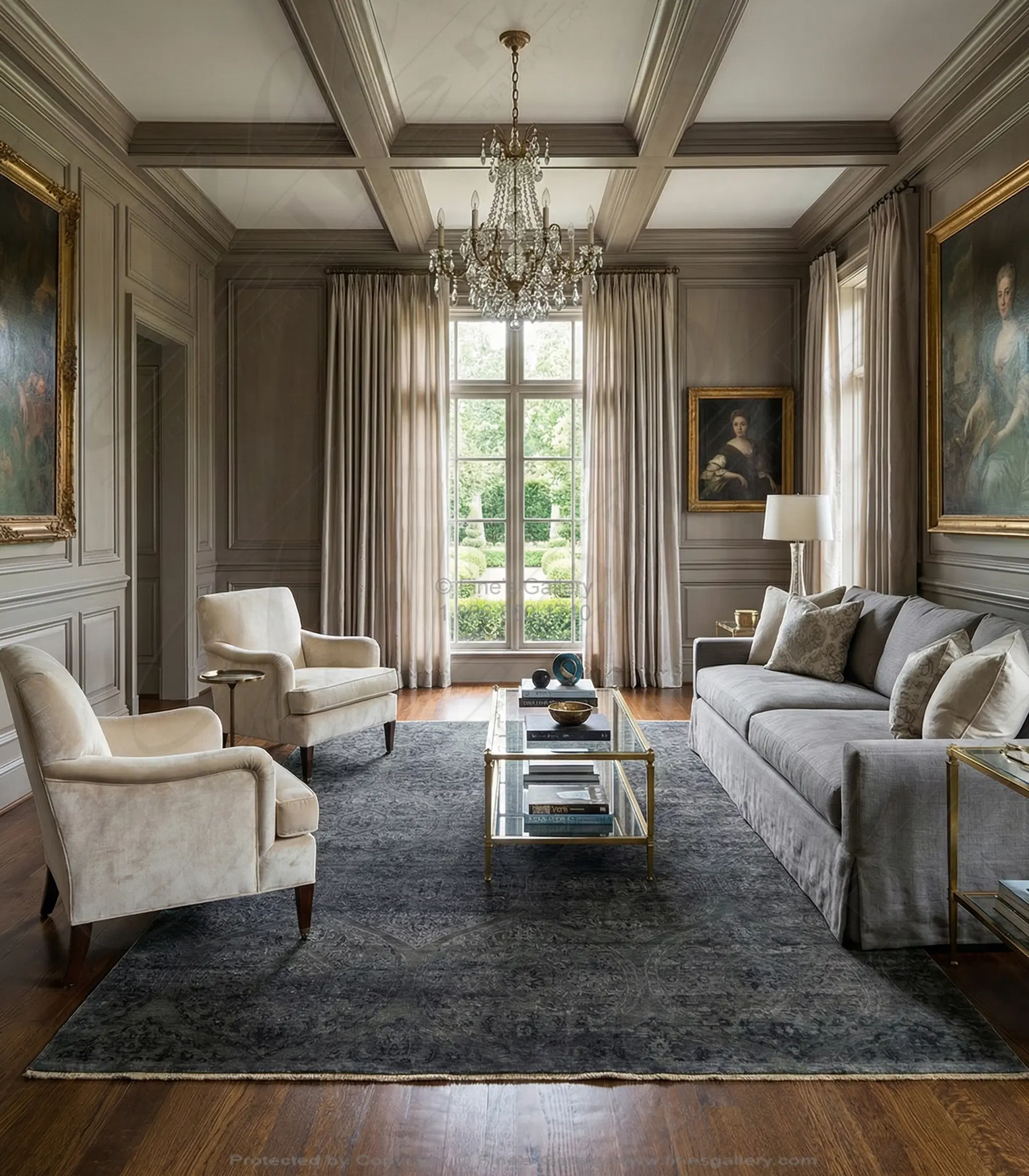 Elegant Hand Knotted Wool Rug Rectangle - Charcoal Tone on Tone Design - Fine's Gallery