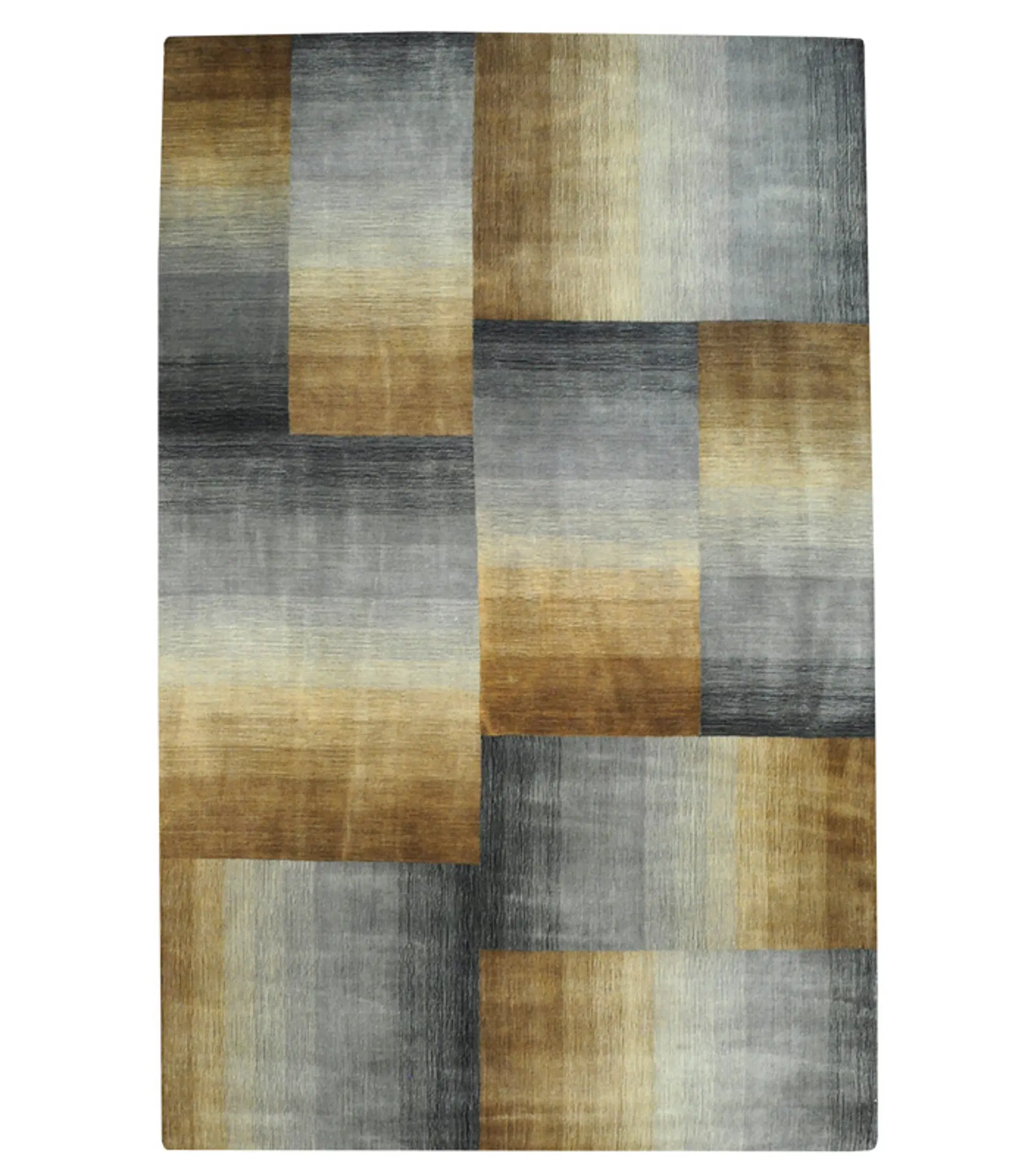 Hand-Loomed Contemporary Gradient Wool Rug - Black to Silver to Brown Rectangle