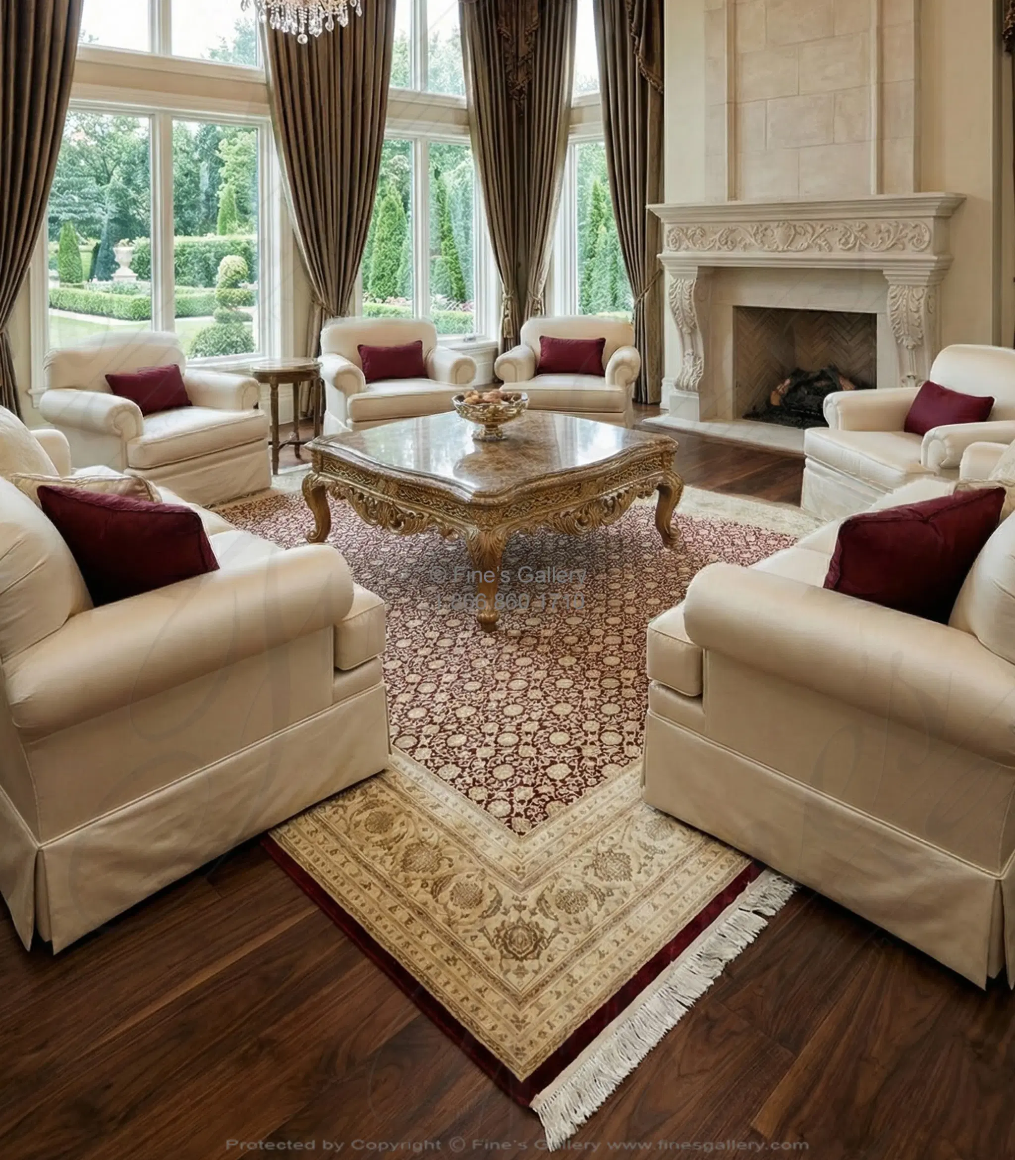 Hand Knotted Wool Transitional Rug - Ruby Red & Cream Rectangle Area Rug