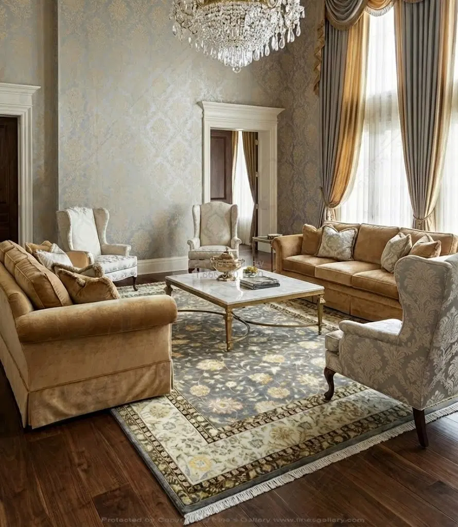 Hand Knotted Wool Rug Rectangle - Grey and Gold with Ivory Border - Luxury Area Rug