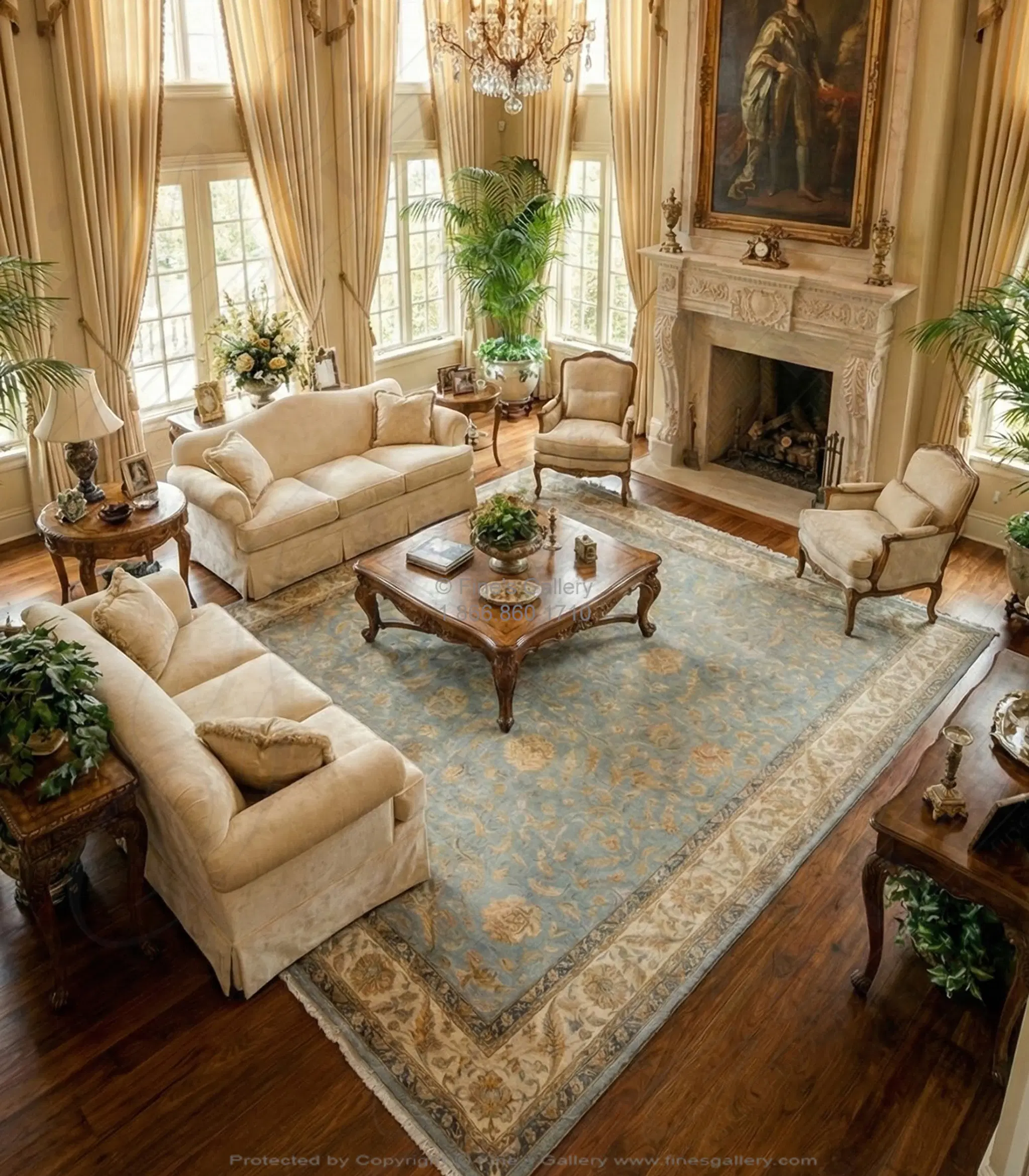 Hand Knotted Sky Blue Wool & Bamboo Area Rug - Jewel Tone Rectangle 7.8' x 11.10'