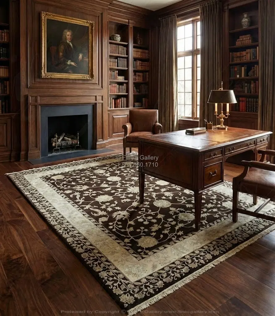 Hand-Knotted Wool & Bamboo Rectangular Rug - Dark Chocolate, Ivory & Grey Luxury Design