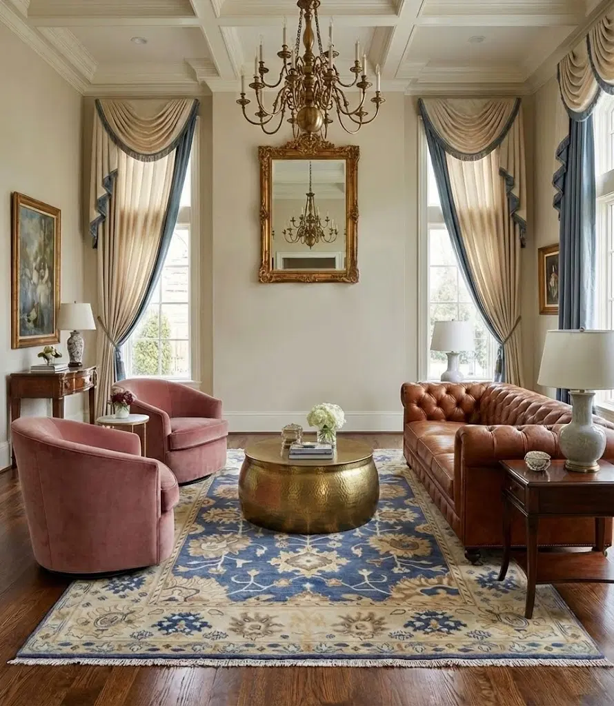 Hand knotted wool rug in marine blue with a cream border and light gold accents. Please call 1-866-860-1710 and talk with a sales representative at anytime.