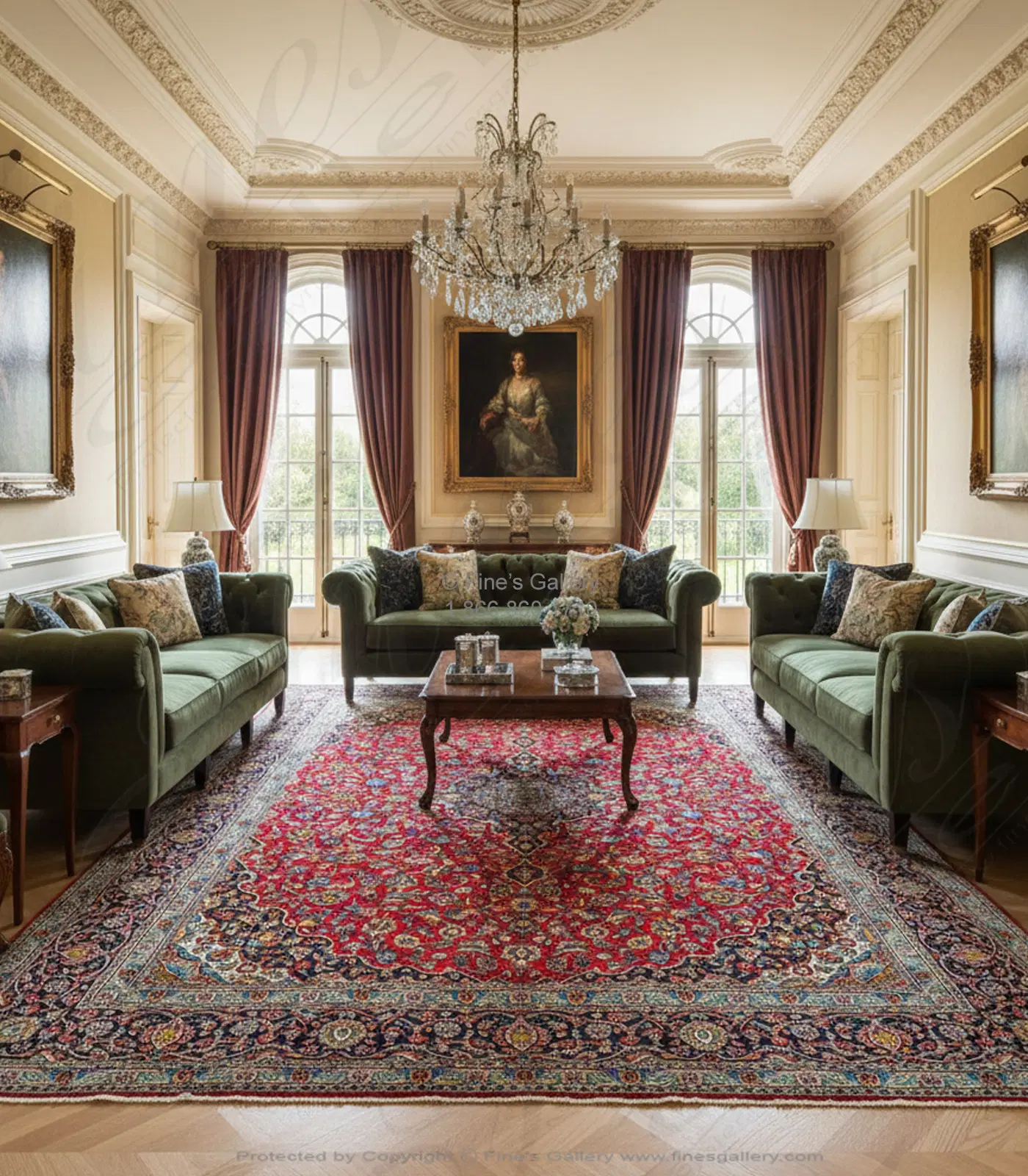 Hand Knotted Semi-Antique Persian Rug Rectangle - Classic Design in Jewel Tones