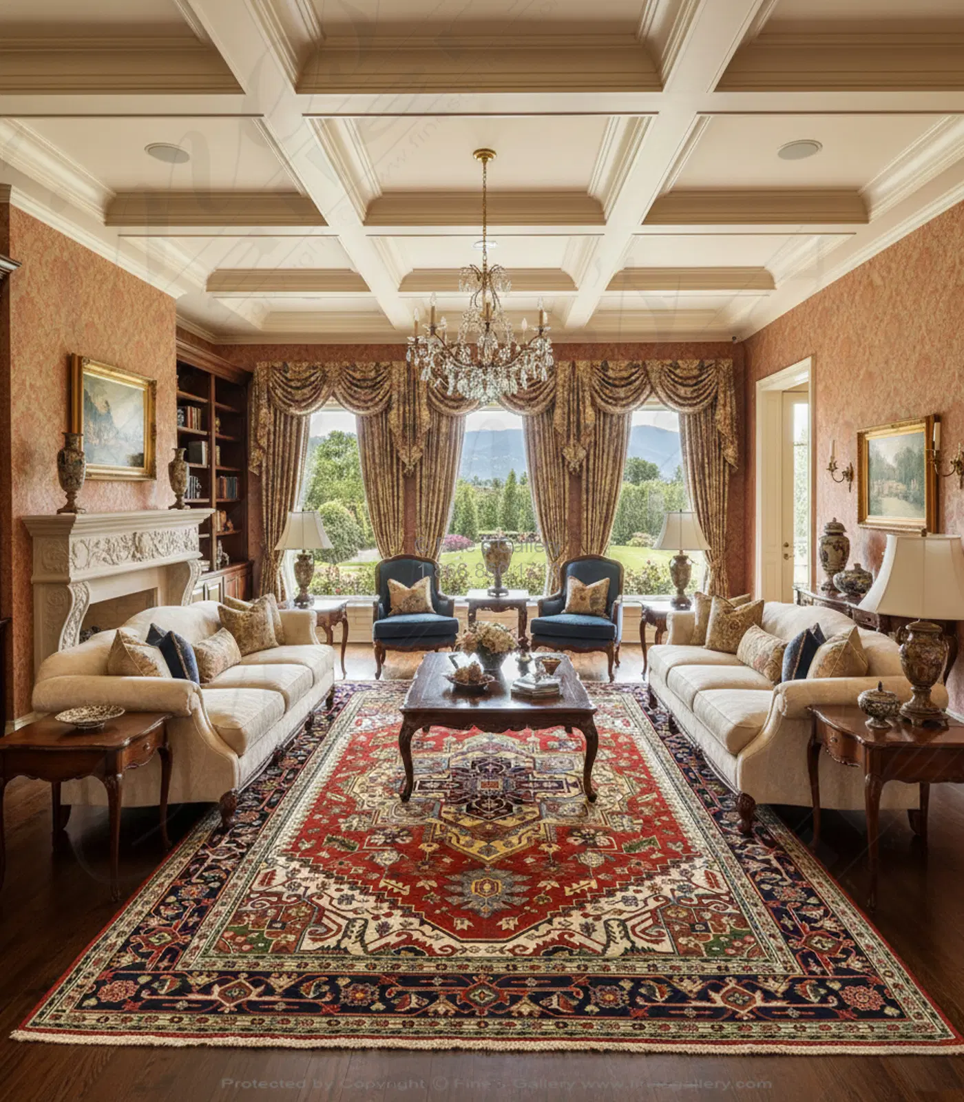 Palace size serapi in hand knotted wool with beautiful red and navy. Please call 1-866-860-1710 and talk with a sales representative at anytime.
