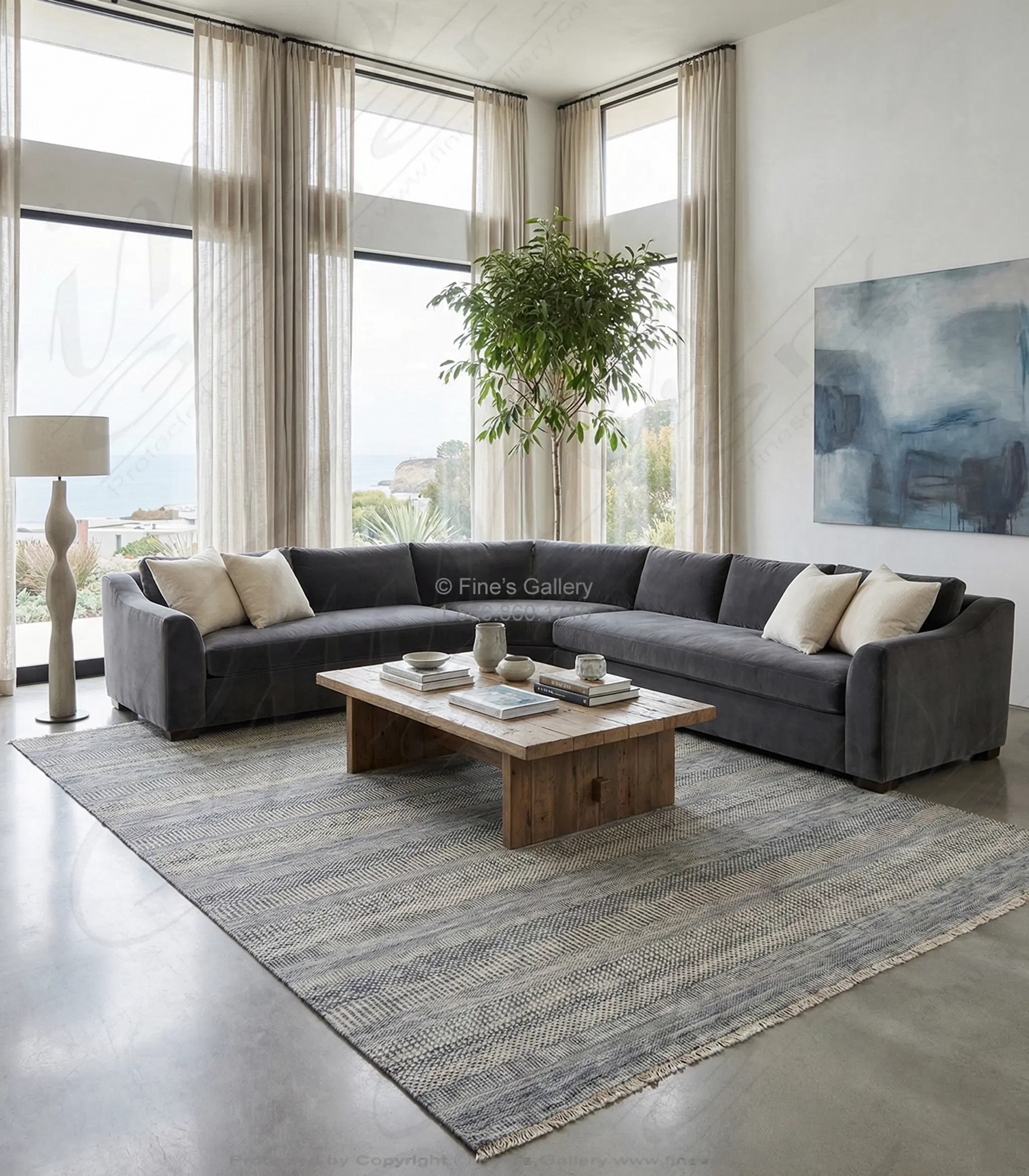 Hand Knotted Wool Rug Rectangle - Textured Deep Grey Blue and Cream Design - Luxury Area Rug